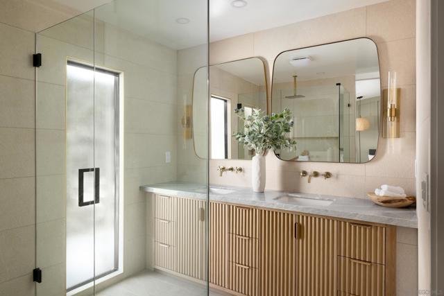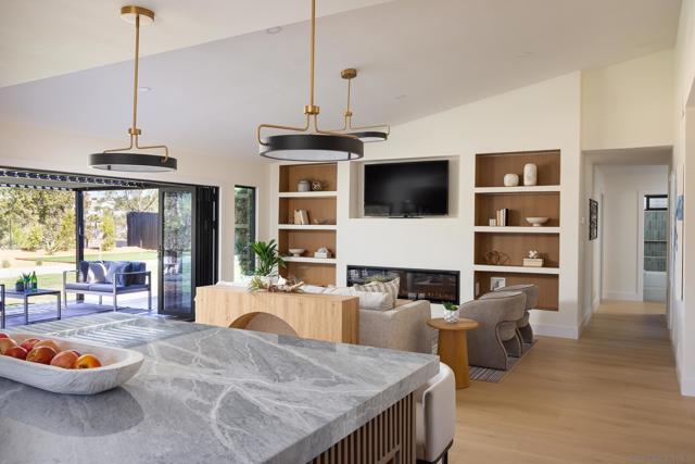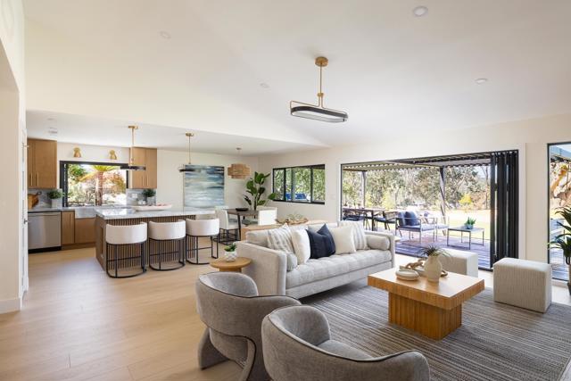 Situated on an expansive nearly half-acre lot, this beautifully reimagined home at 1502 Vanessa Cir offers a rare blend of privacy, modern design, and sweeping area views. The property features a fresh, turnkey renovation with a striking Spanish-modern aesthetic, highlighted by a classic tile roof and dramatic black-framed windows throughout that fill the home with natural light. Inside, the thoughtfully designed floor plan offers exceptional flow, centered around an open kitchen with a large island and modern appliances, ideal for everyday living and entertaining. A stunning vanishing wall of glass creates seamless indoor-outdoor living, opening to a covered patio and expansive backyard with beautiful west/northern-facing area views. The YARDZEN designed grounds are equally impressive, featuring lush grass surrounding the property, a gated front entrance for added privacy, and a newly installed sauna perfectly positioned to capture the views. With its massive lot, refined finishes, and effortless indoor-outdoor lifestyle, this Encinitas property delivers an extremely rare combination of space, style, and tranquility in one of North County’s most desirable coastal communities.