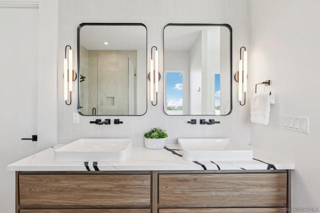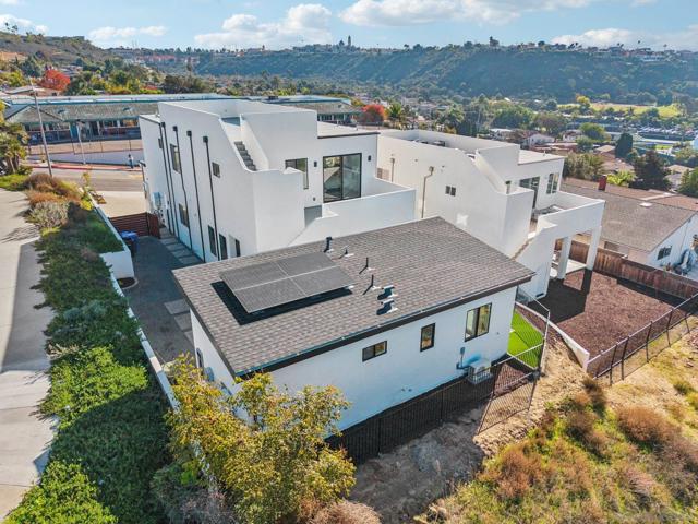 NEW CONSTRUCTION!! Beautiful Bay Park "Beach Chic" Home featuring panoramic views, warm contemporary styling, and a detached 1BR/1BA ADU! Welcome to this stunning residence blending luxury, comfort, versatility, and spectacular views. Perched in a premier location, the expansive rooftop deck showcases sweeping vistas from USD, Point Loma, the Bay and Ocean, all the way to Mount Soledad—an entertainer’s dream. The primary suite is a true retreat, featuring a spacious walk-in closet, sunset-focused patio, spa-like soaking tub, and oversized shower. Upstairs also offers three additional bedrooms, including another with its own en-suite bath, plus a generous laundry room. At the heart of the home, the chef’s kitchen shines with a 48" Z-line cooktop and double oven dual refrigerators, walk-in pantry, warm wood grain cabinetry, wine fridge, and large quartz waterfall island. Accordion doors off the living and dining areas seamlessly blend indoor and outdoor covered patio space and the private backyard. Added perks include soft-close cabinets, wine fridge, epoxy garage floors, OWNED SOLAR, 10' ceilings, boat and RV parking, and a spacious open plan. This home offers rare indoor-outdoor living, upscale amenities, detached ADU income potential, and panoramic San Diego views—truly the perfect place to call home
