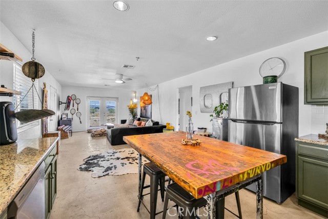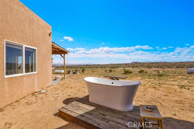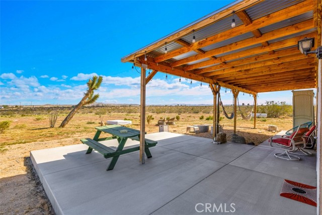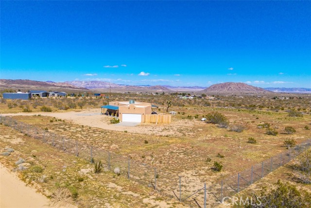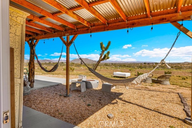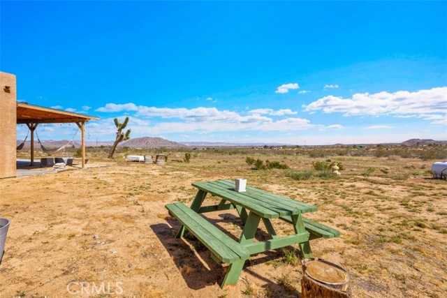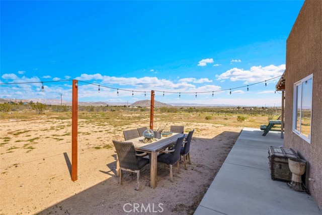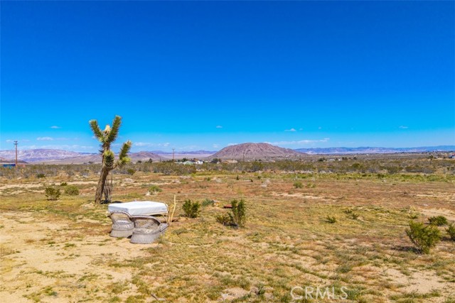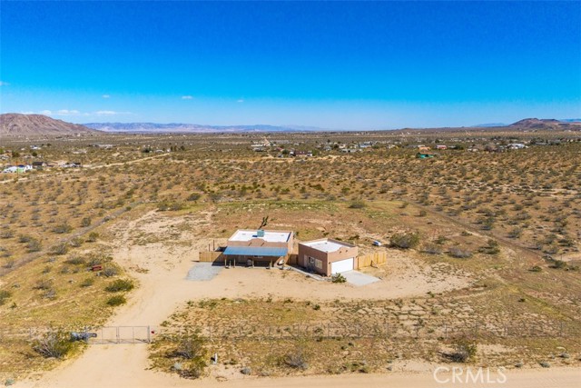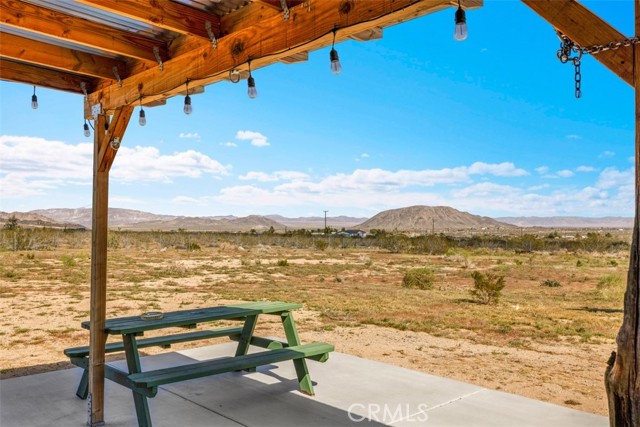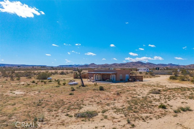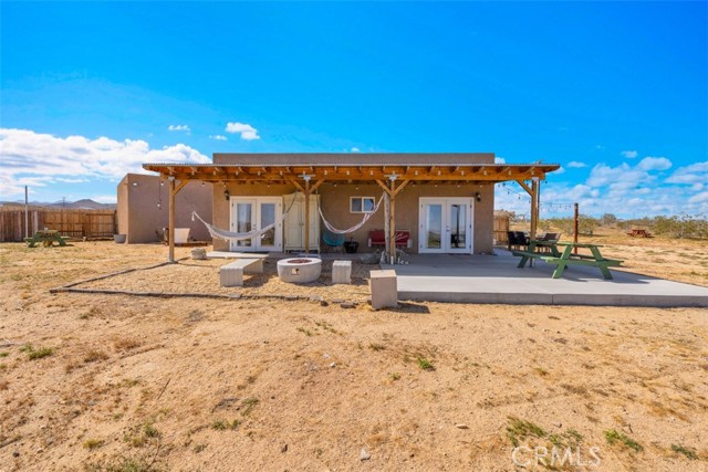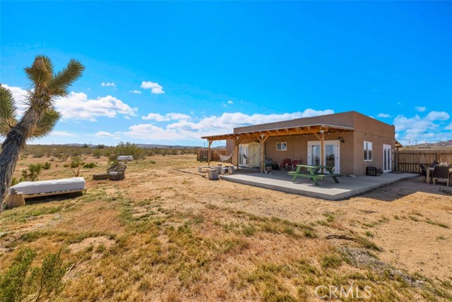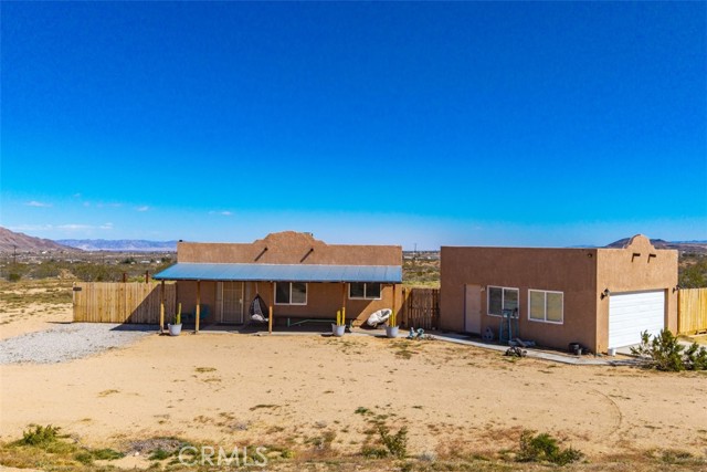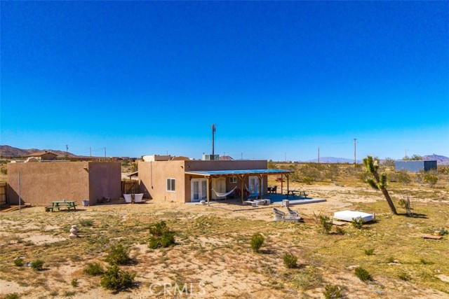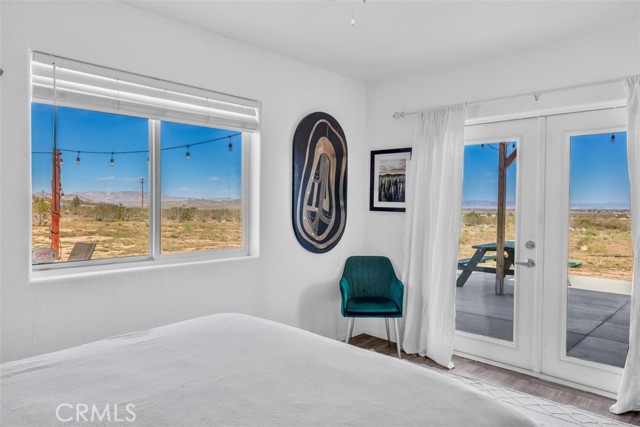 Welcome to 1335 Fortuna Ave in Landers, a peaceful High Desert retreat set on 2.3 acres with stunning views of Goat Mountain, enjoyed right from the bedrooms. This 2-bedroom, 1-bath home offers a comfortable layout filled with natural light and the tranquility of wide-open desert surroundings. Both bedrooms feature French doors that open to a shaded back patio, creating the perfect place to relax while taking in the surrounding desert landscape and mountain views. The living room also features French doors leading to a charming patio area, offering seamless indoor-outdoor living and multiple spaces to enjoy the serene setting. The home also includes an outdoor soaking tub, ideal for unwinding after a day exploring the desert. The property features central air conditioning for comfort and a detached garage for additional storage or workspace. With plenty of open land surrounding the home, there is ample opportunity to create your own private desert oasis. Located in the heart of Landers, the property offers privacy while still being within close proximity to popular High Desert destinations including Giant Rock, La Copine, The Integratron, and Joshua Tree National Park. Experience the beauty and potential of this unique desert retreat while you can!