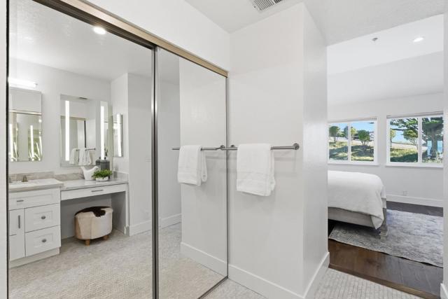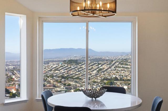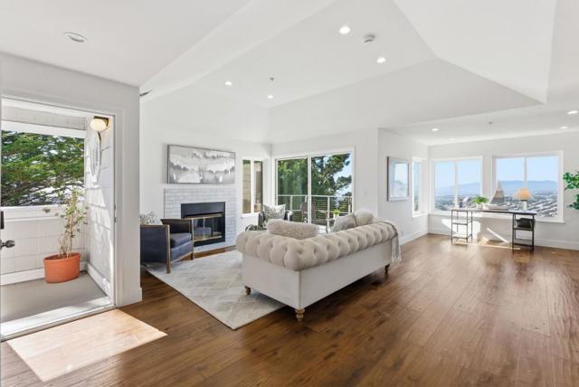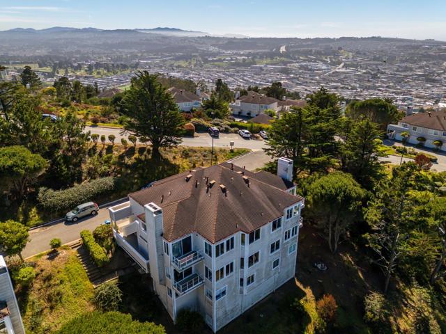 Beautifully updated condo offering spacious interiors, and sweeping city and coastal views. The main living area features hardwood flooring, recessed lighting, high ceilings, and a cozy gas fireplace that anchors the bright living room. The deck off the living room captures impressive views toward Lake Merced, Ocean Beach, Twin Peaks, and the downtown SF skyline. The updated kitchen combines style and functionality with quartz countertops, SS appliances, and modern cabinetry. High ceilings in both the living room and bedrooms enhance the open, airy feel of the home. The primary suite also features a private deck and spacious bathroom, fully tiled, double sinks and a modern stall shower. Residents enjoy access to a variety of community amenities including a clubhouse with event space, kitchen, and lounge area available for private gatherings, fitness center and dry sauna, beautifully landscaped grounds with scenic sitting areas and gated entry for added privacy. The community also offers expansive greenbelt areas and direct proximity to the trails of San Bruno Mountain State Park. With thoughtful upgrades throughout, multiple outdoor deck spaces, and access to amenities, this home offers a rare blend of comfort, convenience, and stunning Bay Area views.