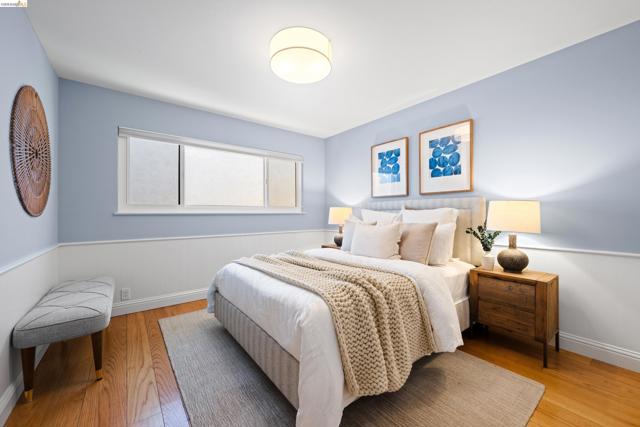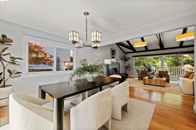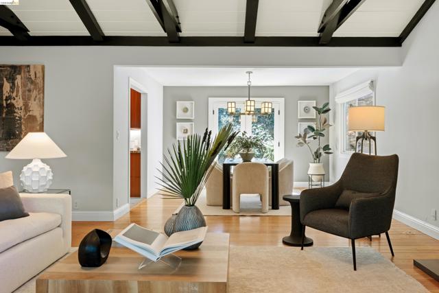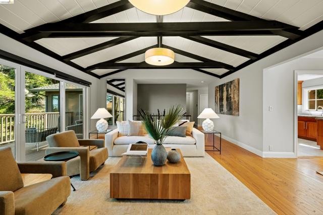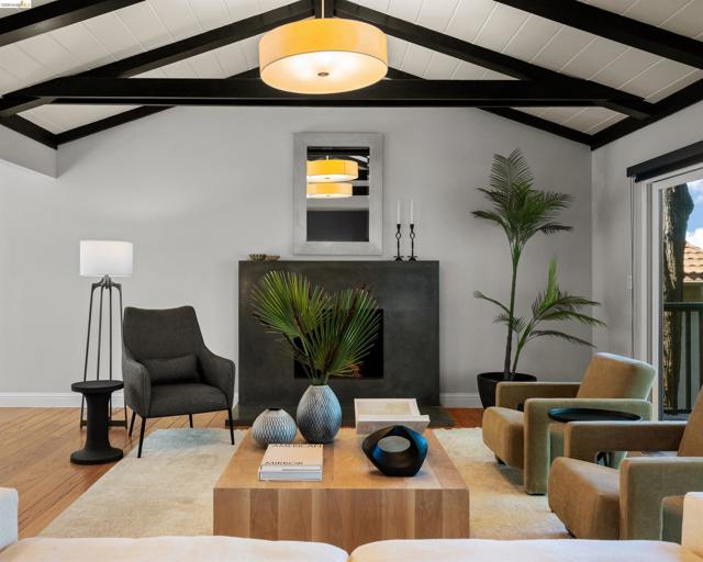 6611 Ascot Dr is a stunning mid-century 4 BD, 3 BA retreat with dazzling Bay views, spanning a sweeping 2,734 sq ft on a 9,112-sq-ft lot off Skyline in private Piedmont Pines. Enjoy vaulted open-beam ceilings, hardwood floors, fireplaces, two ensuite bedrooms and view decks, upgraded kitchen and baths, two-car garage parking, and an ideal two-level floor plan. The main level features a primary suite with bay views and deck access plus two more bedrooms and a bath, and the kitchen, dining room, and living room. The kitchen boasts a six-burner Wolf range, double Fisher & Paykel wall oven, pastry island, and views of the front yard: lemon tree, Eastern Redbud trees, Japanese maple, and more. Through the dining room is a massive living room with soaring ceilings, modern fireplace, and sliding glass doors to the upper deck with North Bay views. Downstairs offers a large, carpeted family room with second fireplace and access to the lower Bay-view deck, and a big laundry room. The true primary suite here finds a fourth bedroom with bay views, vanity room, walk-in closet, and spa-like bathroom with shower and soaking tub. 6611 Ascot Dr is perched on a verdant hillside lot in a fantastic location off Skyline, with East Bay Regional Parks, Montclair, and Lamorinda mere minutes away.