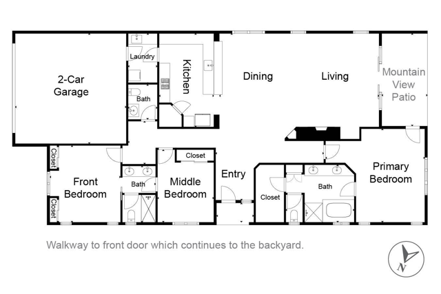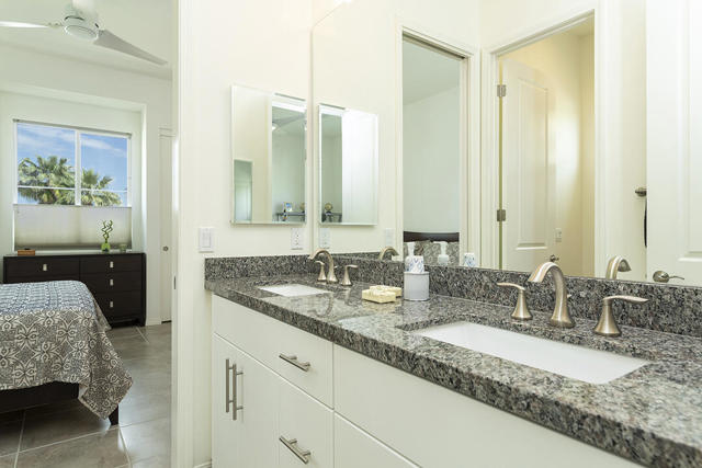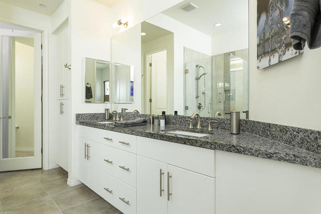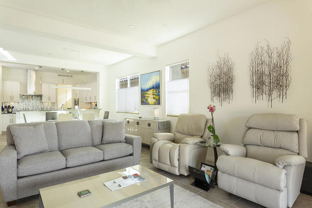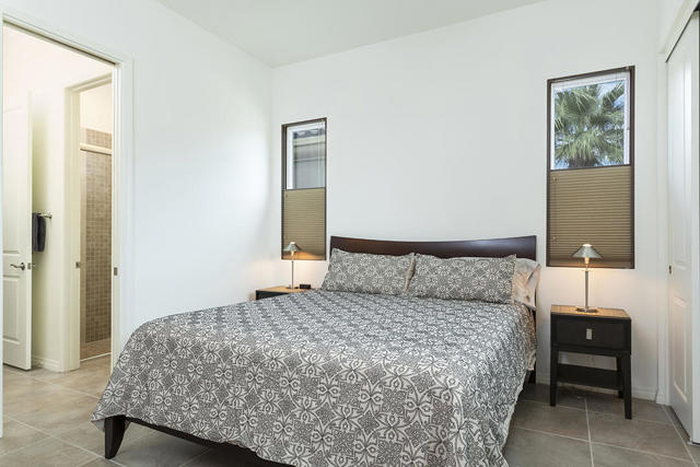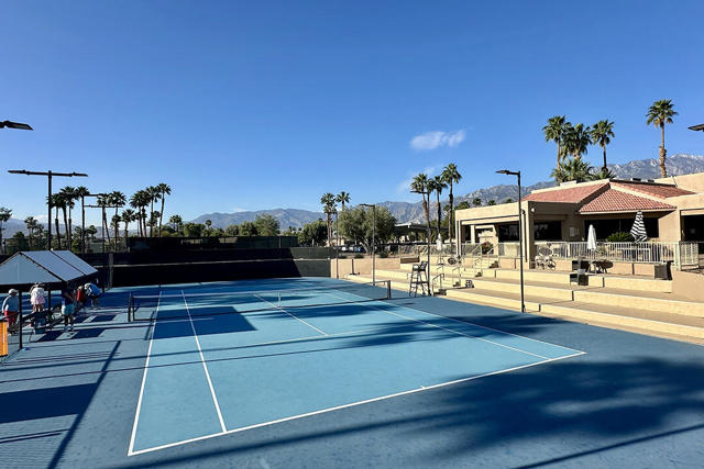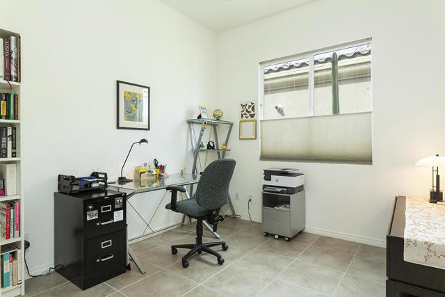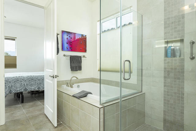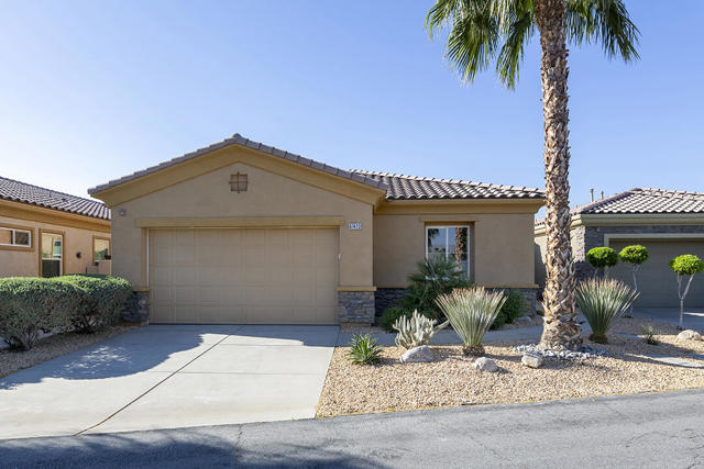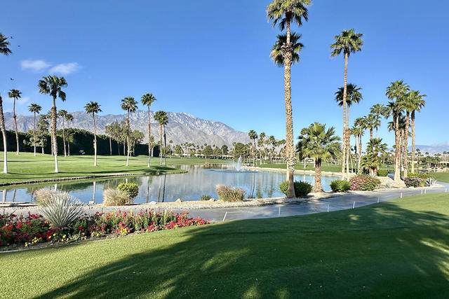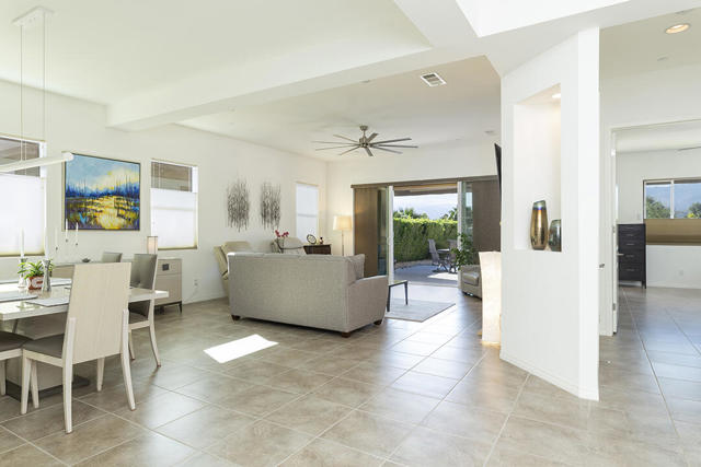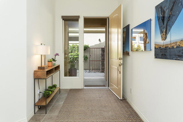 This beautiful Desert Princess home on fee land (land you own) offers the ideal combination of privacy and resort-style living. The showstopper is the spectacular mountain view, best enjoyed from the living room, primary bedroom, or while relaxing under the covered rear patio just off the living room and primary suite. The staggered lots of the neighboring homes, along with the southwest-facing backyard, provide privacy and protection from the desert's wind on its breeziest days.Just beyond the backyard are the Arroyos walking trails, offering nearly four miles of paths through native desert landscaping. Directly across the street is one of the community's largest pools, giving you convenient access without the expense or maintenance of a private pool. The Desert Princess community also features 35 pools and spas, a 27-hole HOA-owned golf course, tennis and pickleball courts, a fitness center, a restaurant, a full-service spa, and a 24/7 guard-gated entrance, creating a true resort environment.Inside, the home offers an expansive open floor plan with a central dining area, chef's kitchen, and an inviting living room with a gas fireplace and sliding door access to the backyard patio. The open kitchen with a dine-in island features quartz countertops, a custom tile backsplash, stainless steel appliances, and a large pantry. Just beyond the kitchen is a laundry room with direct access to the attached two-car garage.The primary suite, with a doorway to the rear patio, enjoys a large picture window framing the mountain views. The spa-like primary bath includes a soaking tub, a separate shower, a double vanity, and a spacious walk-in closet. This Arroyos Villa 2 floor plan also offers two additional bedrooms at the front of the home for added privacy, sharing a Jack-and-Jill bath, along with a convenient guest half-bath in the hallway. From the tile flooring throughout to the contemporary cabinetry and updated finishes, every element of this home feels clean, refined, and move-in ready.Solar | Owned Solar | 22 panels | 7.6 KwHOA | $995/mo - includes 2 DVR or HD cable boxes and service, high-speed Internet, grounds maintained to your door by the HOA ground maintenance crew, outside pest control when requested, and outside water. 24-hour guard gate access, membership to the health and fitness center, which includes access to tennis, bocce ball, and pickleball. Discounts and preferred tee times at the PGA championship golf course, and no initiation fee.