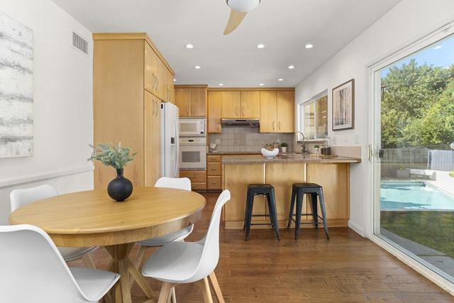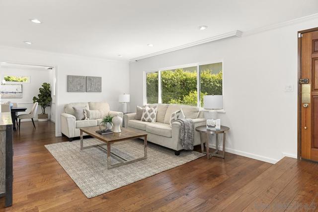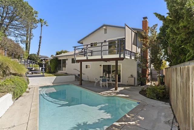 Absolutely beautiful University City home, located at the end of a quiet cul-de-sac, boasting an 18,400sqft lot. Features include: 4 bedrooms, 2.5 bathrooms, 1,894 sqft, wood floors, new paint, upgraded kitchen and breakfast nook, spacious dining room. Family room with wood burning fireplace & wet bar at lower level. Backyard has a refreshing pool, separate grass area with deck. Enjoy relaxing in your serene oasis! Home has owned solar and newer air conditioning. Excellent schools (Curie Elementary). Major businesses, world renowned shopping, beaches, La Jolla are nearby.