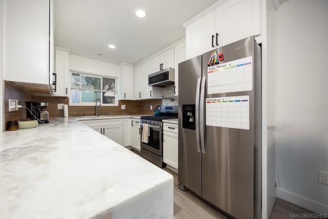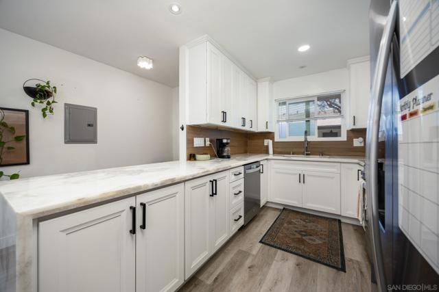 Welcome to 810 E Washington Unit E, a beautifully updated 2 bedroom, 2 bath condo with 1,064 sq ft of stylish living space. This is the best priced renovated two-bedroom home in all of Escondido, offering incredible value with thoughtful upgrades throughout. The kitchen has been tastefully remodeled with sleek marble countertops, modern cabinetry, and updated fixtures, while the home features new flooring and fresh paint for a move-in ready feel. Both bathrooms have been completely renovated, showcasing designer tile surrounds, elegant vanities with quartz counters, updated lighting, and modern fixtures that bring a spa-like touch to daily living. An in-unit washer and dryer provide added convenience. Step outside to your ultra-private outdoor patio, perfect for morning coffee, quiet relaxation, or entertaining friends. The property also includes garage parking with built-in storage and plenty of visitor parking. Meticulously maintained and move-in ready, this home is the perfect balance of style, comfort, and affordability in Escondido.