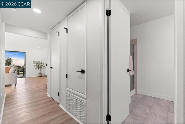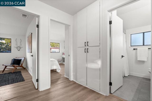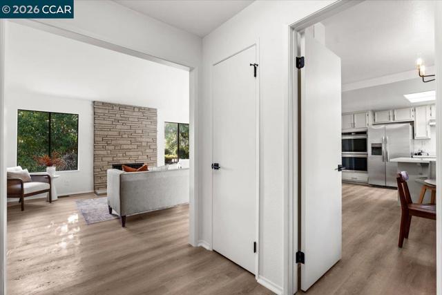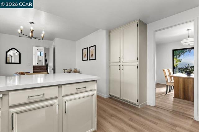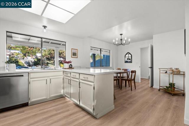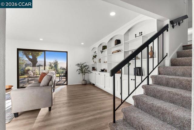 This renovated tri-level home on a 1/3+ acre lot in Richmond's scenic El Sobrante Hills offers spectacular views, privacy, and a floor plan ideal for multigenerational living. Rear-facing outlooks frame a lush landscape throughout, creating a constant connection to the outdoors. The dining room opens to a brick patio where valley vistas set the backdrop for morning coffee and sunset dinners, and the updated kitchen with stone countertops, stainless appliances, breakfast bar, and sunny nook is made for slow mornings. Upstairs, the primary suite is a private retreat with tree-framed views, walk-in closet, and updated bath with thoughtfully curated finishes. The hall bath reflects the same elevated style, while a secondary bedroom with built-in desk offers space for work and study. The lower level offers versatility with direct yard access, a separate family room, bedroom with walk-in closet, and spacious full bath ideal for guests or extended stays. Outside, the multi-level yard unfolds to a usable flat area at the base of the hill, awaiting your imagination. Wide side yards offer privacy and RV/boat space. Imagine daily walks to the neighborhood trail, epic bay views as your reward, miles of nearby parks to explore, and everyday amenities minutes away. Your sanctuary is calling. Views: Ridge