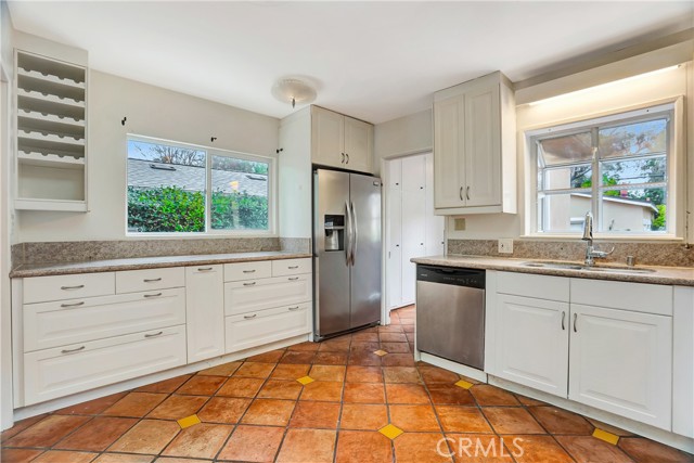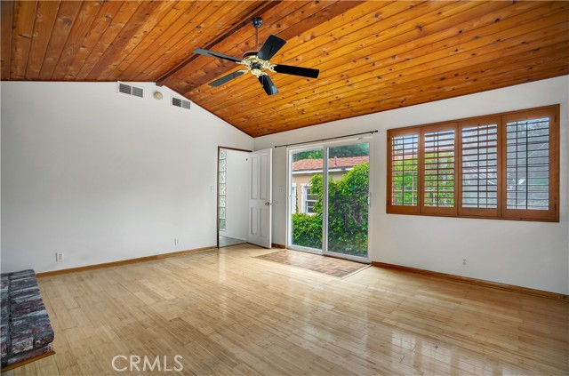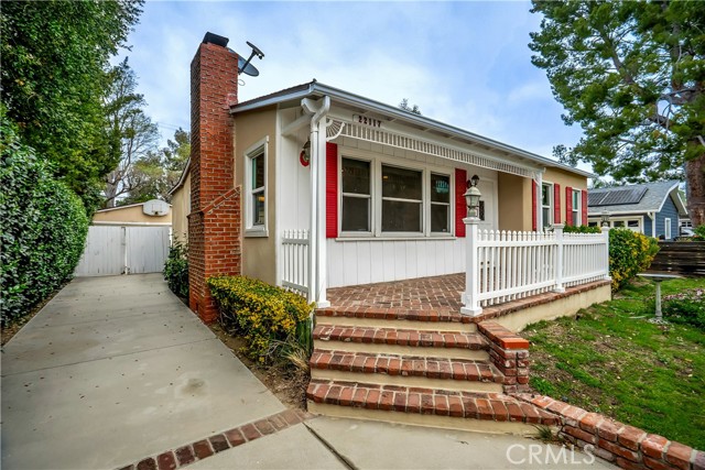 Prime South of Ventura Boulevard location on a picturesque, tree-lined Woodland Hills street, this inviting single-story home offers warmth and space. Ideally located just a few homes away from Woodland Hills Elementary Charter for Enriched Studies (buyer to verify enrollment). With 3 bedrooms plus a spacious bonus room across 1,671 sq ft, the thoughtful layout adapts beautifully to everyday living. Durable wood-style flooring and recessed lighting enhance the bright interior, while a relaxing brick fireplace anchors the welcoming living room. The cheerful kitchen features modern cabinetry, granite countertops, and a gas cooktop, flowing easily to the brick rear patio—perfect for morning coffee, weekend barbecues, or outdoor dining. One bedroom includes an en-suite bathroom with shower. Privately set at the rear of the home, a spacious bonus room features wood beam vaulted ceilings, its own fireplace, dual-sink vanity, jetted tub/shower combo, and a dedicated walk-in closet area—creating a true primary-style retreat, guest space, or private office. The flat grassy backyard provides space to play, garden, or simply unwind. A detached two-car garage and extended driveway offer ample tandem parking. Just moments from Ventura Boulevard’s shops and restaurants, The Village, Westfield Topanga, and convenient canyon and 101 access, this South of the Boulevard home blends comfort, location, and long-term potential.