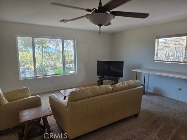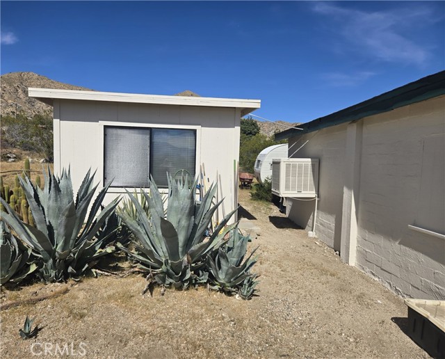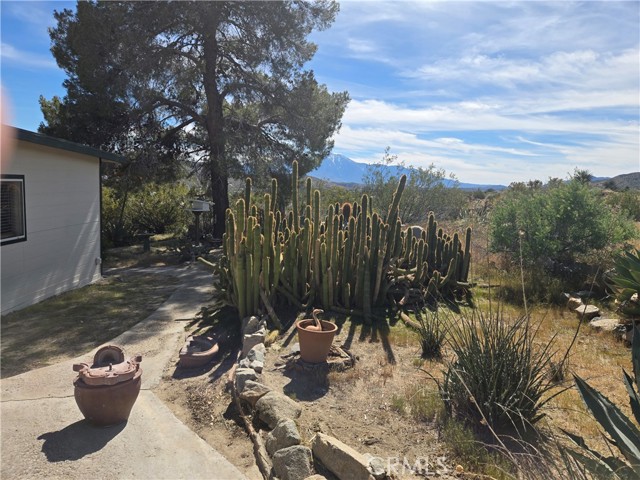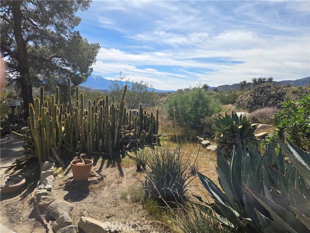 Escape to your own private desert retreat with this enchanting 2-bedroom, 1-bath cottage set on 2.5 fully fenced acres of breathtaking landscape. Surrounded by wide-open skies and panoramic mountain views, this property offers the perfect blend of cozy comfort and expansive outdoor living. Step inside to a warm and inviting living space anchored by a charming fireplace—ideal for cool desert evenings. Natural light pours through the windows, framing unforgettable views and creating a bright, airy atmosphere throughout. Outside, a thoughtfully curated cactus garden adds character and vibrant desert beauty, while the generous acreage provides privacy, room to roam, and endless possibilities. The entire exterior of the home has been freshly painted. The detached garage is currently being used as a studio, offering flexible space for art, work, or guests—with exciting potential to convert into an ADU for additional living space or rental income. Whether you're seeking a peaceful full-time residence, a weekend getaway, or an investment opportunity, this desert gem delivers charm, versatility, and unforgettable scenery.