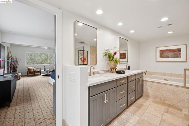 Perched in Oakland’s hidden gem Upper Dimond neighborhood, this 1956-built 3-story home has been refreshed w/ a designer’s eye, thoughtfully expanded over the years & takes full advantage of its expansive downslope setting, capturing dramatic views of SF and the Bay from every level. A flexible floorplan brings forward 5 bedrooms & 3 baths, along w/ a dedicated office alcove framed by Bay views & a lower-level family room w/ wet bar, also featuring Bay views. Open to the living & dining area, the updated kitchen features newly painted cabinetry, quartz countertops, Thermador appliances, an expansive island, designer lighting & large windows framing City & Bay views. The expansive primary suite offers a 2nd fireplace, sitting area, spa bath w/ jetted tub, oversized walk-in shower, travertine tile, dual sink vanity, & walk-in closet. The lower level includes a separate family room w/ wet bar, office alcove, bedroom & yard access. Tiered grounds feature a patio, basketball court & additional open space to grow into. Upgrades include a newer roof, 3 new high-efficiency furnaces, dual-pane windows, recessed LED lighting, fresh paint inside/out, new plumbing fixtures, lighting & hardware. Attached 2-car garage & laundry room w/ side by side W/D, plus plenty of storage. Not to miss. Views: Downtown