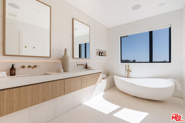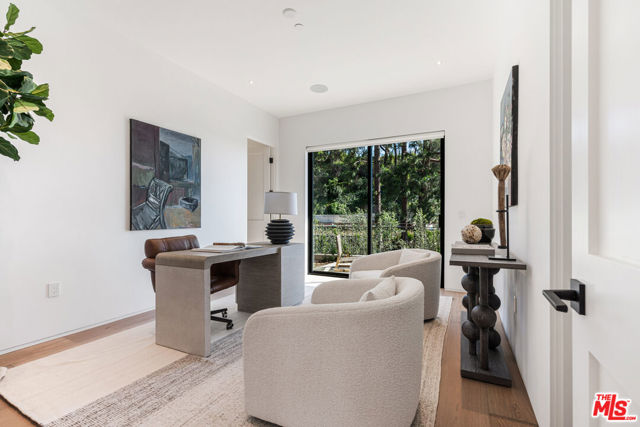 One of the first newly constructed homes available in Pacific Palisades, this brand-new organic-modern ocean-view pool home sits on a prominent 16,927 sq ft corner parcel, offering exceptional privacy and sweeping Pacific Ocean views. The residence features 4 bedrooms with en suite baths, plus an additional powder room, soaring 12-foot ceilings, and expansive walls of glass with pocketing aluminum sliding doors that create seamless indoor-outdoor living. Designed with an organic, modern coastal aesthetic, the home blends clean architectural lines with warm, natural materials, including wide-plank European oak floors, custom rift oak cabinetry, natural stone finishes, and Taj Mahal quartzite countertops. The chef's kitchen features Thermador appliances and a pass-through pocket window opening to an outdoor bar and BBQ area, ideal for entertaining. An expansive rooftop deck captures panoramic ocean and sunset views with garden areas, utilities, and preparation for speakers and a fire feature. The main living spaces open to multiple outdoor areas, including three front patios, a covered rear patio with a fire pit, integrated speakers and TV wiring, and a resort-style pool and spa with mosaic detailing, water features, and smart controls. A private patio off one of the bedrooms offers additional outdoor living space. Additional features include a two-car garage with an EV charger and epoxy flooring, a laundry room with a sink and storage, and a fully integrated smart home system with whole-home audio, surround sound, security cameras, an alarm system, WiFi boosters, and smart entry. The home is built with extensive fire-conscious design elements, including reinforced exterior construction, dual-glazed tempered windows, interior and exterior fire sprinklers, rooftop sprinklers supplied by a pool reservoir backup, non-combustible roof deck pavers, and low-fire-risk landscaping with more than 30 olive trees. Constructed and designed by Builder Direct Design Build, a respected Palisades family-owned firm known for exceptional craftsmanship.