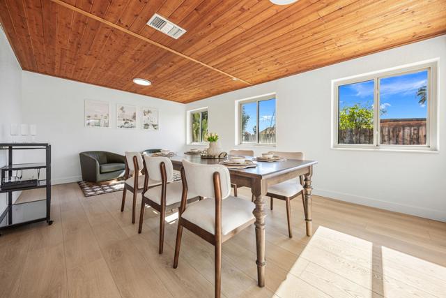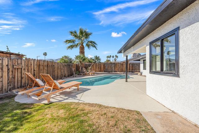 This beautifully upgraded 1,820 SqFt 3 bedroom, 2 bath main home with bonus room plus attached 1 bedroom 1 bathroom casita with kitchenette, that is perfect for mother-in-law suite, multigenerational living, or a great opportunity to produce rental income. Property features completely paid off solar.The home features a bright and open floor plan that creates a seamless flow between the living, dining, and kitchen areas that are ideal for both everyday living and entertaining. The newly remodeled kitchen has been thoughtfully updated with modern finishes and opens up to a charming breakfast nook, providing the perfect spot for casual dining or morning coffee. Both bathrooms have been beautifully renovated, showcasing contemporary design, updated fixtures, and quality craftsmanship that give the home a fresh, move-in-ready feel. Just off the living room, a spacious and versatile bonus room offers endless possibilities and can easily be used as a formal dining room, home office, playroom, media room, or additional living space to fit your needs.The backyard is designed for desert living, featuring a pool and spa, covered patio, and stunning mountain and palm tree views, creating the perfect space for relaxing or entertaining.With its flexible layout, modern upgrades, and outdoor space, this home is a rare opportunity for both homeowners and investors alike.