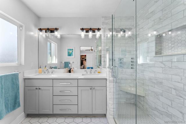 Located on the desirable north side of Kensington and just a short stroll to the restaurants, cafés, and shops along Adams Avenue, this beautifully remodeled Craftsman blends timeless character with thoughtful modern upgrades and a detached income-producing ADU. The main home showcases classic architectural charm paired with an inviting layout designed for both everyday living and entertaining. The spacious kitchen serves as the heart of the home, featuring quartz countertops, custom cabinetry, a large butcher block island, farm sink, and built out pantry. French doors throughout the home invite natural light and create a seamless connection to the outdoor living areas. The primary suite offers a peaceful retreat with a generous walk-in closet and a beautifully designed ensuite bathroom featuring elegant marble finishes, a custom vanity, and a spa-inspired walk-in shower. Set on a generous 7,168 sq ft lot, the backyard has been thoughtfully designed with turf and concrete to create clean, low-maintenance entertaining areas. A brand new jacuzzi and outdoor shower enhance the private, resort-style feel of the space. The detached ADU offers exceptional flexibility and is currently generating $2,650 per month in rental income, providing a valuable opportunity to offset the mortgage, host extended family, or create a private guest retreat. Major upgrades include a brand new roof and fully paid solar, new plumbing, new electrical, adding long-term efficiency and peace of mind while enhancing the home’s overall value and sustainability.