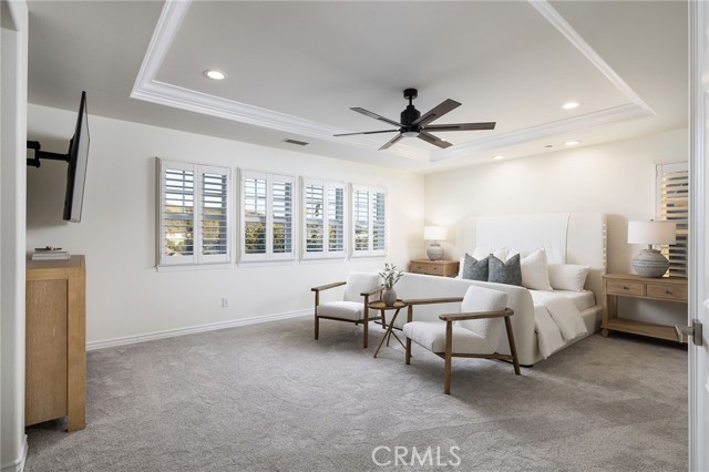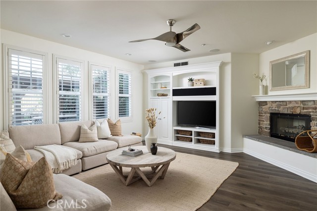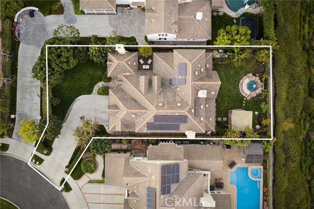 Welcome to 8 Welbe, a 4 bed / 3 bath home offering nearly 3,200 sqft of living space, ideally situated on a cul-de-sac in the highly sought-after Belmont Hill neighborhood of Ladera Ranch. Set on an oversized lot, the property offers rare privacy, a spacious front yard, and an extended driveway that creates an impressive arrival while providing ample parking in addition to the three-car garage. Inside, wood-look flooring flows throughout the main level, while high ceilings and abundant windows fill the home with natural light. The beautifully updated kitchen is designed for both functionality and gathering, featuring a large center island, charming breakfast nook, built-in work desk, and abundant cabinetry for storage. The oversized family room overlooks the backyard and includes a fireplace and built-in entertainment center. A separate formal living room also features a fireplace and doors, allowing it to easily function as a private office if desired. A downstairs bedroom with an en suite bathroom provides flexibility for guests or multi-generational living. Upstairs, the spacious primary suite offers a peaceful retreat, complete with a private balcony that captures tranquil views. The updated primary bathroom includes a large walk-in shower, soaking tub, and an expansive walk-in closet with extensive built-in organizers. Two additional bedrooms and finished storage space complete the upper level. The backyard serves as a private sanctuary. Positioned to take advantage of the home’s east-west orientation, it offers breathtaking views. The space is ideal for both relaxing and entertaining, with a spa, a pergola with ceiling fan, and a covered patio with fireplace, all surrounded by lush, mature landscaping that enhances privacy and tranquility. Additional highlights include a fully owned solar system, water softener, repipe of home, whole-house fan, tankless water heater, and abundant storage throughout the home. Ideally located within walking distance to Chaparral Elementary School, restaurants, shopping, hiking and biking trails, and more. Residents enjoy access to Ladera Ranch’s exceptional amenities, including multiple pools, clubhouses, parks, a skate park, water park, and miles of scenic trails. Blending thoughtful upgrades, generous living spaces, and inviting outdoor areas, 8 Welbe presents a rare opportunity to enjoy privacy, comfort, and elevated living in one of Ladera Ranch’s most desirable neighborhoods.