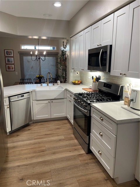 Beautifully maintained and ideally situated in a quiet neighborhood, this 2-bedroom, 2.5-bath condo backs to a tranquil greenbelt, offering rare privacy and peaceful views of lush greenery rather than neighboring homes. Large windows throughout the home frame the natural surroundings and fill the space with abundant natural light, creating a bright and inviting atmosphere. The thoughtfully designed layout features an updated kitchen with quartz countertops, new cabinets and appliances, as well as luxury vinyl plank flooring throughout the first floor. The kitchen and living spaces are meticulously maintained and in excellent condition, making the home truly move-in ready. Additional upgrades include a new A/C and furnace, all new double-pane vinyl windows, and energy-efficient LED lighting throughout the downstairs. The primary suite features a spacious walk-in closet and an en-suite bathroom with dual vanities, offering both comfort and functionality. Everyday convenience is enhanced with an in-unit washer and dryer, while a direct-access one-car garage provides added ease and practicality. The HOA replaced the tile roof approximately five years ago, providing additional peace of mind. Residents of Cabo Vista enjoy access to a private community pool and spa, along with the many amenities that make Rancho Santa Margarita such a desirable place to live. The community offers access to Lago Santa Margarita, the popular Beach Club and Lagoon, multiple swimming pools, and 13 parks featuring playgrounds, picnic areas, and sports courts. A network of scenic trails runs throughout the city, ideal for walking, running, and biking. Rancho Santa Margarita is also consistently recognized as one of California’s safest cities, offering residents both peace of mind and an active, resort-inspired lifestyle.