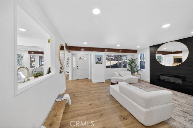 Escape the Ordinary! Welcome to the Rimforest area of Lake Arrowhead. This Beautiful 5 Bedrooms 3 Bathroom Home + 150 sqft Loft (with a 2 Car Garage). Nestled amount the Beautiful Pines of Rimforest. This Modern Farmhouse Style Home offers the prefect blend of rustic character and modern comfort , surrounded by Nature and Fresh Mountain Air. The home features a striking A-Frame inspired design with a spacious upper balcony deck--perfect for enjoying morning coffee, relaxing in the he evening or taking in the serene forest view. Large Windows fill the home with natural light while bringing the beauty of the outdoors inside. Inside, you'll find a warm and inviting open layout ideal for full-time residence, weekend gateway or vacation rental. The property sits on a peaceful hillside lot with mature trees, creating privacy and a true mountain atmosphere. Located just minute from local shops, dining, and outdoor recreation, this property also offers easy access to nearby mountain destinations including hiking trails, lake activities, snowboarding and mountain biking.