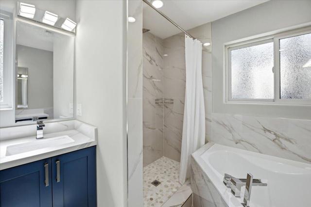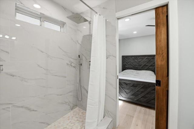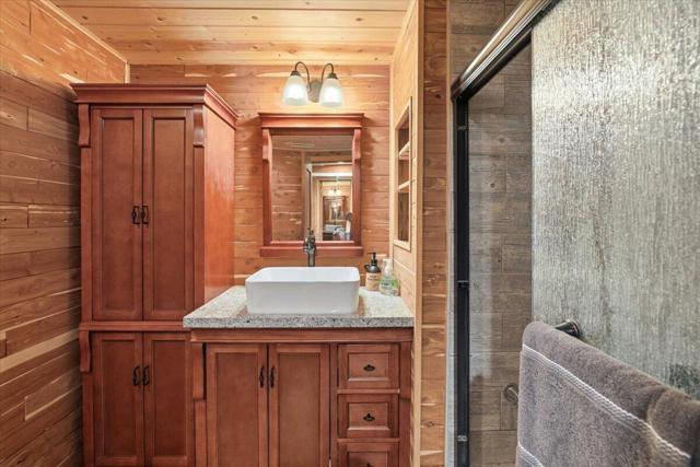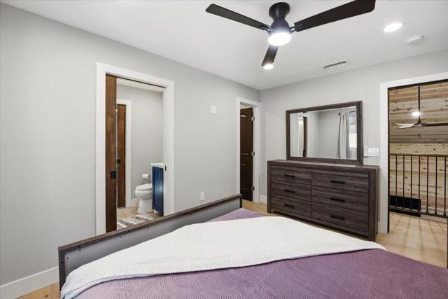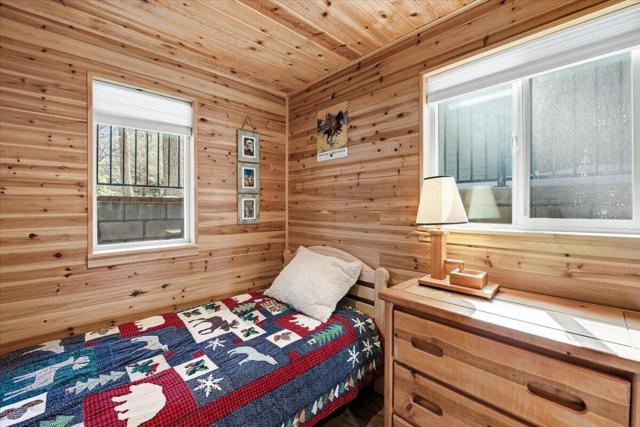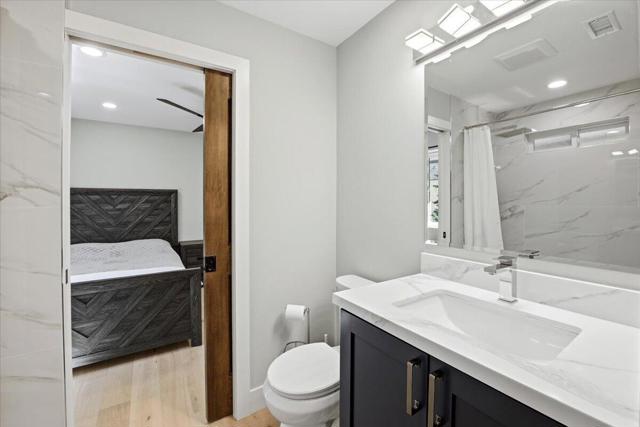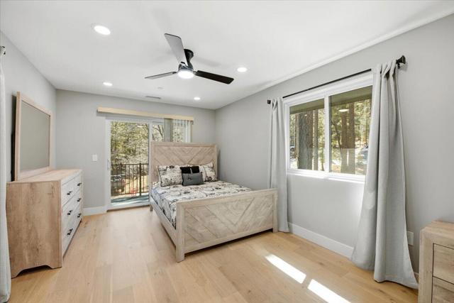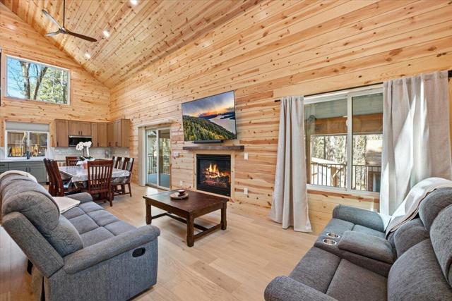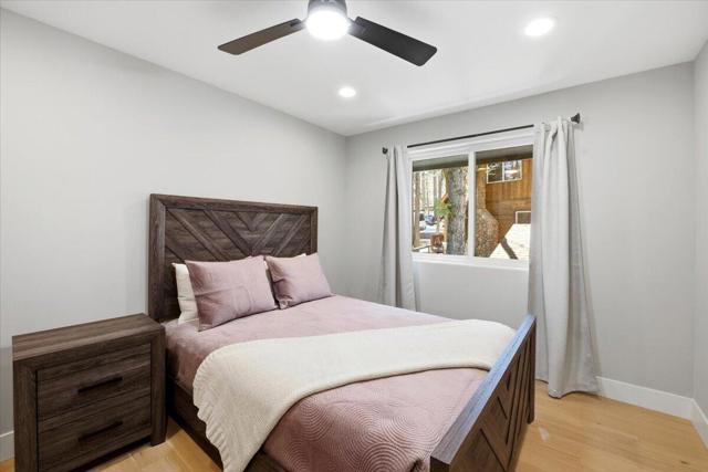 Stunning brand-new 2026 construction with a fully remodeled ADU, ideally located doors from the National Forest in the heart of Big Bear Lake. This rare dual-dwelling property offers exceptional craftsmanship, premium materials, and incredible flexibility for full-time living, multi-generational use, or rental income. The main home features 4 bedrooms, 3.5 baths, and 1,901 sq ft of beautifully designed living space. Enjoy soaring 15+ ft vaulted ceilings, solid wood doors, 2x6 construction, full insulation, LVP hybrid flooring with real oak top layer, and a spacious open-concept living area with a gas fireplace. The kitchen includes brand-new appliances, 2-tone cabinetry, under-cabinet lighting, and modern finishes. The first-floor primary suite offers a spa-style bathroom with soaking tub, large shower, dual vanities, and walk-in closet. Upstairs includes two Jack-and-Jill bedrooms plus an additional primary suite with private balcony. Home is fully furnished and equipped with a 4-ton AC system, gas forced air furnace, 2.5 kW solar + 5 kW backup battery, 200-amp panel, fire sprinkler system, waterproof decks, and a spa-ready covered patio. Concrete driveway, safety railings, and fenced yard complete the exterior. The fully remodeled ADU cabin offers 3 bedrooms, 1 bath, and 856 sq ft, featuring a beautiful native rock wood burning fireplace in the living room, dining area, full kitchen with new appliances, stacked washer/dryer, and fully furnished--ideal for guests or rental potential. A truly turnkey property offering modern comfort, mountain charm, and an unbeatable Big Bear Lake location. This fantastic property has it all! Must see!