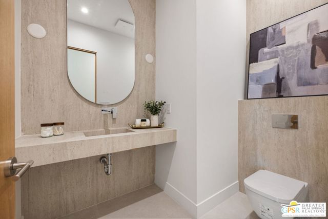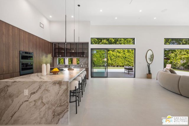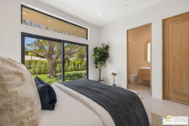 All new for 2026, this architecturally striking ultra-modern residence brings a bold contemporary presence to Palm Springs' desirable Movie Colony East neighborhood. Designed with clean lines, soaring ceilings, and walls of glass that frame the dramatic west-facing views of Mt. San Jacinto, the home offers approximately 2,500 square feet of refined indoor/outdoor living with four bedrooms and three-and-a-half baths. Set on fee land with no HOA, the property blends privacy with a prime location just minutes from the restaurants, galleries, and energy of downtown Palm Springs. Inside, porcelain tile flooring, sleek cabinetry, and refined modern finishes reinforce the home's minimalist design aesthetic. The open-concept living and dining areas flow seamlessly toward the outdoors, where multiple conversation spaces surround the newly built pool and spa, creating a true resort-style environment. At the heart of the home, the chef's kitchen centers around an oversized island and features KitchenAid appliances, smart lighting, and modern cabinetry designed for both everyday living and entertaining. The thoughtful layout provides excellent bedroom separation for privacy. The Primary Suite opens directly to the pool terrace through dual sliding doors and features a walk-in closet and spa-inspired bath with soaking tub and walk-in shower. Junior Ensuite Two enjoys views and its own private bath, while Bedrooms Three and Four capture mountain views and share convenient access to a beautifully appointed bath. A powder room serves guests. Modern comforts continue throughout with upgrades including a Sonos sound system, Grohe plumbing fixtures, Lutron lighting controls, and wireless-enabled pool equipment. A rare opportunity to enjoy brand-new modern architecture in one of Palm Springs' most sought-after neighborhoods where design, privacy, and mountain views converge.