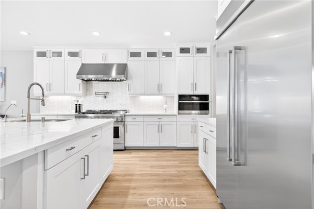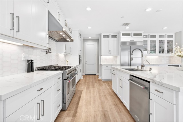 Located in the gated Ponte Vista community adjacent to Rancho Palos Verdes, this beautifully appointed home offers 4 bedrooms, 4 bathrooms, and approximately 3,350 square feet of refined living space on a 5,221 square foot lot. Designed to balance everyday comfort with elevated living, the home showcases spacious interiors, thoughtful functionality, and modern finishes throughout. The expansive open-concept floor plan invites everyday living and effortless entertaining. At the heart of the home is a true chef’s kitchen with an oversized island, ceiling-height cabinetry, quartz countertops, built-in wine fridge, and a chef-caliber double oven range with wall-mounted pot filler. Multi-panel sliding doors open to a covered patio overlooking landscaped pavers and artificial turf, creating a seamless indoor-outdoor flow. The attached garage with direct access to the kitchen adds everyday convenience, while a main-level guest bedroom offers ideal flexibility for visitors or multigenerational living. Upstairs, the primary suite enjoys trail views and is complemented by a spa-like primary bathroom with spacious dual vanities, an oversized walk-in shower, freestanding deep soaking tub, separate toilet room, and a massive walk-in closet. Two additional bedrooms and a spacious loft offer flexibility for a home gym, media room, or upstairs family room or lounge. Additional features include an upstairs laundry room, large walk-in linen closet, and a water softener system for added convenience and comfort. Residents enjoy access to Ponte Vista amenities including security patrol, pool, spa, fitness center, dog park, BBQ area, fire pit, and walking trails, all with a low monthly HOA of $250. Ideally situated just minutes from beaches, dining, shopping, and freeway access, this home is also near the evolving LA Waterfront and West Harbor, where the highly anticipated first phase is expected to debut in 2026 with new dining, shopping, entertainment, and waterfront experiences—offering not only a beautiful home, but also an opportunity to enjoy one of the harbor area’s most exciting growth corridors.