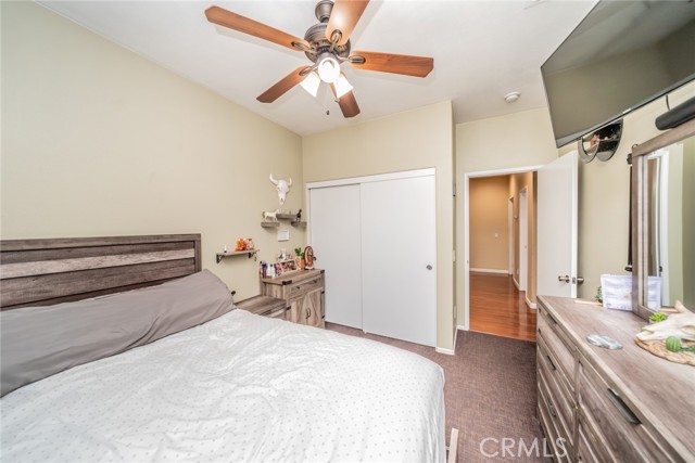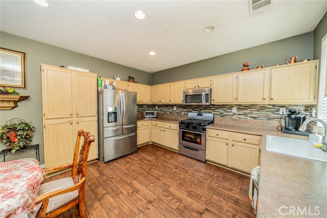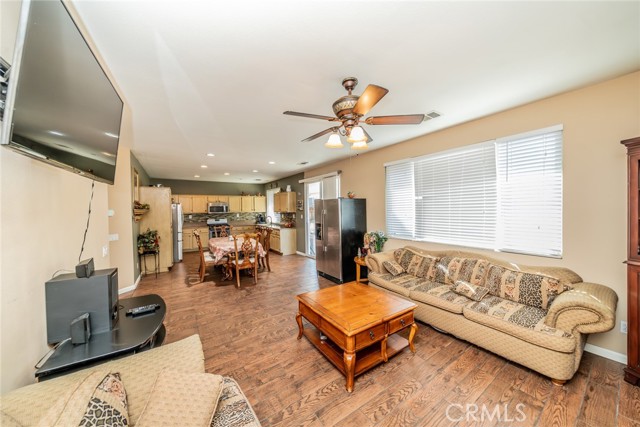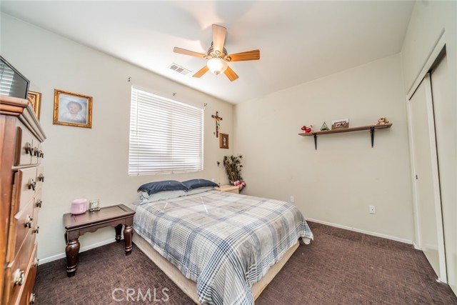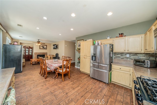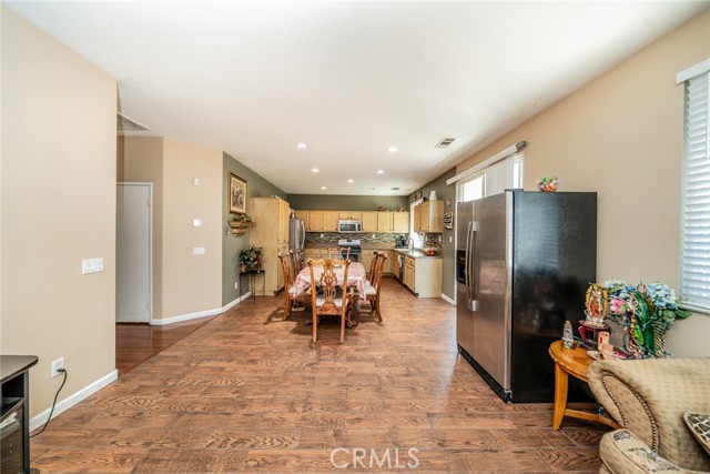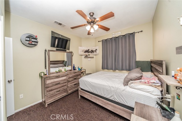 Welcome to this 3 bedroom 2 bath home with a Gorgeous open floor plan that has plenty of cabinets space, beautiful backsplash and granite counter tops in the kitchen. There is a formal entry, dining room, living room and all bedrooms have ceiling fans. You have recessed lightening throughout the home. The master bedroom has a huge walk-in closet and is separate from the other two rooms. you also have a laundry room and a New Water Heater! The front yard comes with a wide driveway, for those days that you have gatherings you will have plenty of space for your guests. This home is great for first time home buyers or if you are looking to downsize. You will save money on water as there is no grass in the front yard and the house has Tesla solar panels which will save you money on electricity! The back yard has aluma wood patio this will be great for barbecues and to enjoy the backyard with family and friends. Come see this beauty!