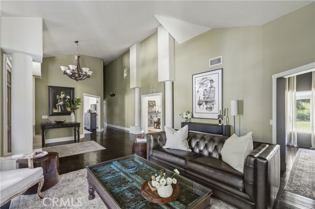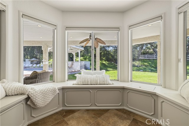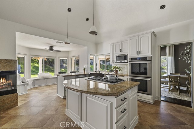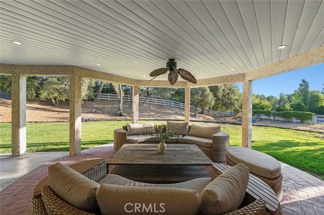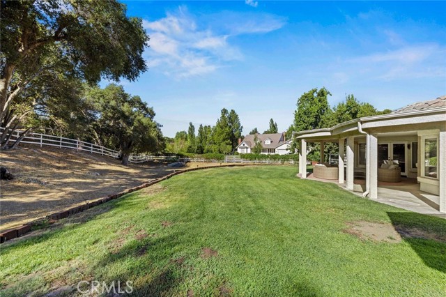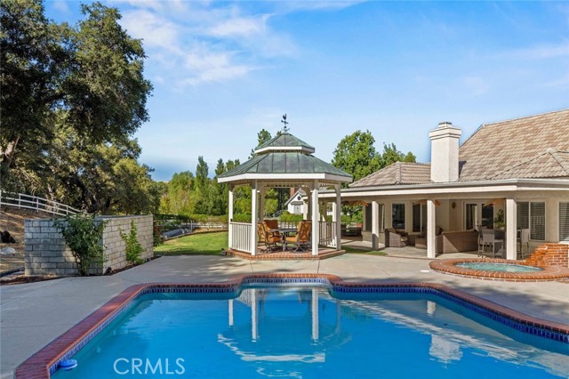 Welcome to one of the most desirable streets in all of Sand Canyon, located on a flat cul de sac within the sought after Crystal Springs Ranch community. Set on nearly one acre, this single story estate offers approximately 2,900 square feet with four bedrooms including a den that can easily function as a fourth bedroom, three full bathrooms, and a layout designed for both everyday living and entertaining. The home is filled with natural light and features high ceilings, wood floors, French doors, and three fireplaces that create a warm and inviting atmosphere. The refreshed kitchen serves as the heart of the home and has been thoughtfully arranged to create a spacious eat in gathering area, featuring stainless steel appliances, double ovens, granite countertops, a large center island with bar seating, a hammered copper farmhouse sink, bronze fixtures, and a charming breakfast nook with custom built in seating. The built in banquet seating includes hidden storage beneath the seats, adding both character and functionality. At the front of the home, the main living room offers an inviting space for relaxing or entertaining. Between two secondary bedrooms is a versatile flex space ideal for a study, work area, or lounge, with those bedrooms sharing a Jack and Jill bathroom, while the current den can easily function as a fourth bedroom and connects to a full bathroom, providing flexibility for guests, a home office, or multi generational living. The primary suite offers a retreat like setting with a door to the backyard and a spa inspired bathroom featuring custom cabinetry, elegant vanities, glass block details, a handcrafted hammered copper soaking tub, and a hidden walk in closet. The backyard creates a private entertainer’s setting with a sparkling pool and spa, full outdoor kitchen with built in barbecue and sink, permanent gazebo, and a large wraparound covered patio with ceiling fans that stretches nearly the length of the home, surrounded by mature oak trees and natural surroundings. Additional features include a three car garage, indoor laundry room, and space for potential RV parking. Crystal Springs Ranch offers a peaceful setting with a low HOA of approximately $150 per year and no Mello Roos while still being just minutes from shopping, dining, and freeway access in Santa Clarita.