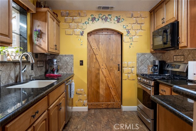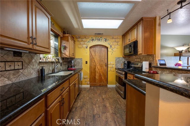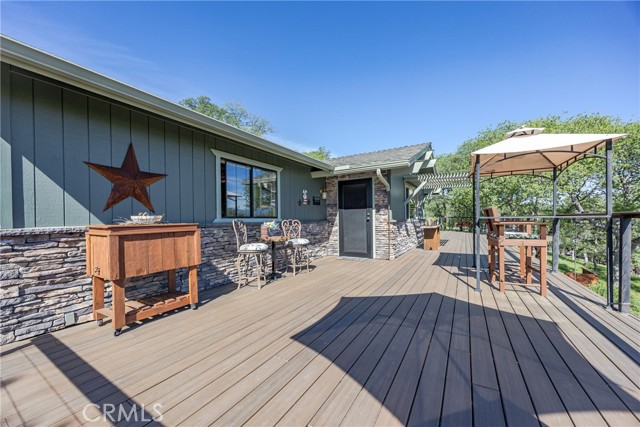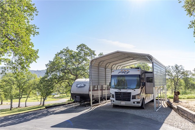 Located in the highly desirable Yosemite Lakes Park, this exceptional property offers privacy, quality, and unmatched views near the top of the mountain. An immaculate, manicured driveway lined with retaining walls and landscaping welcome you to this estate-style home featuring covered RV parking for two rigs, a side carport, and two storage sheds (10x6 and 7x7). Enjoy breathtaking, million-dollar views from the expansive low-maintenance composite front deck with railing spanning the entire front of the home. The rear features a finished porch with patio covering, LED lighting, metal roofing, and rain gutters extending across nearly the full length of the house. Inside, you'll find extensive updates throughout, including custom barn doors, a remodeled kitchen and bathrooms, new Karndean LVT flooring throughout, and an EPA-compliant wood-burning stove. The home is equipped with owned solar free and clear for added efficiency. A rare opportunity this is truly one-of-a-kind within Yosemite Lakes Park.