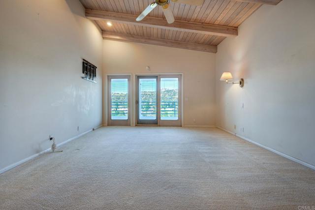 Stunning home with panoramic mountain and valley views in the highly desirable San Diego Country Estates! Perched on an elevated lot, this light-filled residence offers soaring vaulted wood-beam ceilings, expansive windows, and an open floor plan designed to capture breathtaking scenery from nearly every room. The spacious living room features a cozy fireplace, dramatic ceilings, and direct access to a large view deck—perfect for indoor-outdoor living and entertaining. The adjacent dining area flows seamlessly and is filled with natural light. The kitchen offers ample cabinetry, generous counter space, and a breakfast bar that opens to the main living areas. The oversized primary suite includes vaulted ceilings, private outdoor access, and an ensuite bath with dual vanities, separate tub, and separate shower. Additional bedrooms are well-sized with flexible options for guests, office, or hobbies. Additional highlights include a 3-car garage, indoor laundry, and multiple outdoor spaces including a front patio and expansive rear deck to take in the surrounding hills, golf course and open space. Solar system in place for added energy efficiency. Located in the San Diego Country Estates, residents enjoy exceptional amenities including pools, tennis and pickleball courts, parks, miles of hiking and riding trails, and much more. A rare opportunity to own a view home with space, character, and access to one of San Diego County’s most sought-after communities!