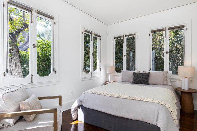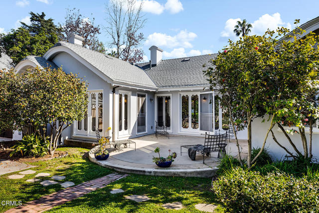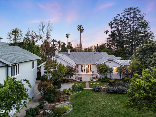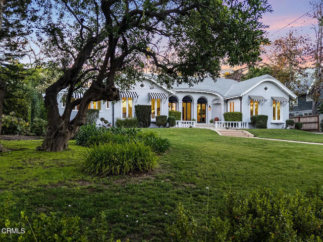 This 1921 Italian Renaissance Revival Villa epitomizes historic Altadena. Built by designer Pasquale de Rosa, friend of the legendary Zane Grey, this exquisite compound on over half an acre is a work of art. Sited to enjoy spectacular mountain views, the property includes a main residence, guest quarters, barn studio, and beautiful gardens. There is beauty to be found everywhere here, in the natural surroundings to the classical symmetry and curves. Featuring an H-shaped plan, the home's distinctive roofline is defined by its rounded gables, sculptural carved rafter tails, and starburst oculi at the east and west of the facade. Three french doors at the entry elevation boast views through the central living room, and open to a harmonious floor plan. Connecting public and private spaces, while enjoying access to patios and gardens to the north and south, the room is anchored by a decorative fireplace, rich carved mahogany woodwork, and original candelabra sconces. An elegant formal dining room features coved ceilings and french doors, flowing naturally into an updated eat-in kitchen, while a quiet sitting room with its own decorative fireplace enjoys views and direct outdoor access. Throughout the property, details are exquisite: custom plaster moulding, elaborate trim and baseboards, and carved wood frames on casement windows and doors speak to the vision and craft of the original builder. The main residence offers four bedrooms, including two generous primary bedrooms, one with a full ensuite bath, the other with french doors opening to the backyard gardens. The gardens are magical, with a grassy lawn framed by sculptural conifers, fruit trees, a cactus garden, roses, gardenias, and fragrant herbs, with the majestic San Gabriels in the background. A large filtered koi pond and a separate decorative pond peacefully ground the space. The separate back house with guest studio upstairs has handsome tongue and groove wood paneling, with a three-quarter bath, laundry and a garage with storage on the ground floor. Lastly, the onetime barn, now a studio, opens a world of possibilities as a home gym, gardener's studio, or future office. 1275 New York Drive is a once-in-a-lifetime opportunity to own a landmark property of genuine architectural significance in one of the Foothills' most cherished neighborhoods. Minutes from restaurants, coffee shops, retail and the cultural attractions of Altadena and downtown Pasadena, this transporting home is a gem.