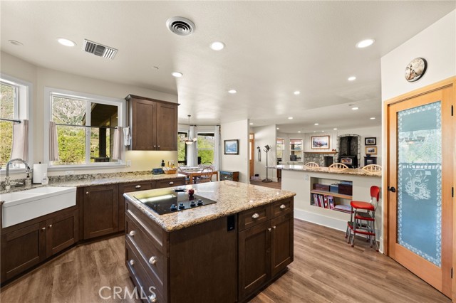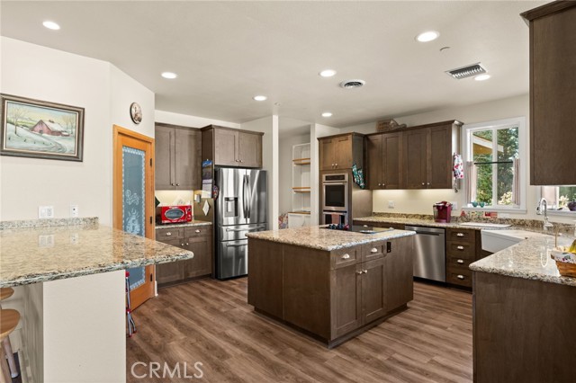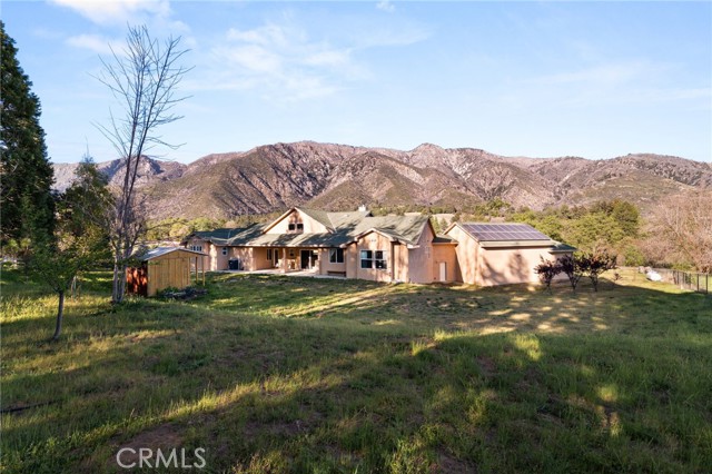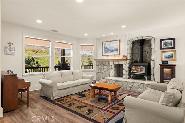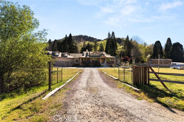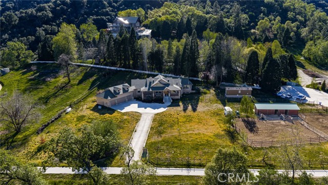 Over two acres in Oak Glen with a single story 2013 build, an attached four car garage, stables, and a separate guest home.  Welcome to Snow Line Ranch! Located on a private street in the picturesque town of Oak Glen, this custom built home sits directly across from the protected Wildlands Conservancy. You approach the property and are greeted by stunning mountain views.  Enter the home past the large front porch, or directly from the oversized four car garage (est. over 1200 sq ft) , which features even more storage space in a dedicated loft overhead. The great room in the center is the heart of the home.  A sizable living area features a rock wall with a wood burning stove. This opens up to a foyer, dining, and a large kitchen.  All of these rooms are filled with natural light from large double pane windows. High end touches included a conventional double oven, a walk in pantry, excellent counter space, and the farmhouse sink.  You may actually enjoy dishes with this view! The spacious primary suite is off of the kitchen, with it's own walk-in closet and a sizable bath.  There is a large shower and a soaking tub.  There are three additional bedrooms opposite the family room, all with sizable closet space.  One features French doors, and is currently in use as a home office. This home even has a basement (estimated at 432 square feet, and not included in the online square footage).  Heading outside, there is a 2023 Park Model manufactured home with two additional bedrooms, kitchen, living space, and even laundry hookups (estimated at 392 square feet, and not included in the online square footage). With it's own permanent water, power and septic hookups, this is perfect for a home office, guest space, or extended live-in family.  This private location on Raspberry means serene country living without the inconveniences of being too far off the grid.  We are only 15 minutes from Stater Brothers Market in Upper Yucaipa, and just around the corner from local Oak Glen dining. There is a paid solar system - owners total Edison power bill in 2025 was less that $100. Sellers use Starlink for internet. The Generac propane generator and the Oak Glen Domestic Water Company Shares are also included in the sale.
