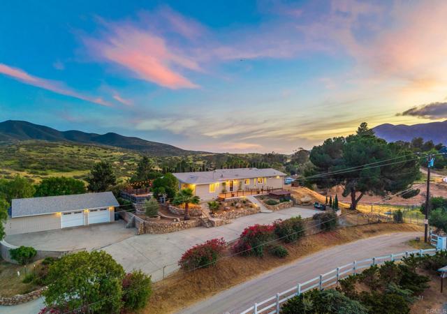 Set on just over 3 acres of usable land in scenic Proctor Valley, this beautifully upgraded single-story home captures the essence of Jamul living with sweeping open space views, expansive skies, and a peaceful sense of privacy, all just minutes from the conveniences of Rancho San Diego. Completely renovated from top to bottom, this 3-bedroom, 2-bath residence blends comfort, efficiency, and thoughtful design. Vaulted ceilings create an airy, open feel, while luxury vinyl plank and tile flooring flow seamlessly throughout. The kitchen has been refreshed with newly painted cabinetry and premium stainless steel appliances, creating a clean, modern aesthetic that feels both elevated and functional. At the heart of the home, a wood-burning stove adds warmth and character, anchoring the living space with a cozy, inviting ambiance. A well-designed 2021 addition expands the home by approximately 300 square feet, introducing an additional bedroom, mudroom, built in storage area, and its own dedicated heating and cooling system, ideal for flexible living. Energy-efficient features, including solar-powered attic fans and dual-pane vinyl windows, enhance year-round comfort. Extensive system upgrades offer long-term peace of mind, including newer roofs on both the main home and detached oversized two-car garage with a workshop and office, PEX plumbing with hot and cold water manifolds, a 200-amp electrical panel that is solar ready, an EV-compatible outlet for modern convenience, durable Hardie board siding built to last generations, and fresh exterior paint. The property benefits from both well water and public water, providing added flexibility for rural living. Step outside and the lifestyle truly unfolds. A newly upgraded front deck creates inviting gathering spaces for quiet mornings and golden hour sunsets, while the backyard firepit is perfect for evenings beneath star-filled skies. The fully fenced, usable acreage offers exceptional versatility, whether envisioned as a homestead, space for animals, or future expansion with an ADU. A powered livestock shelter with running water is already in place, and four goats are included to naturally maintain the land. Mature fruit trees, including orange, grapefruit, nectarine, pomegranate, lime, and lemon, bring seasonal harvests and a sense of self-sustaining living. Positioned directly across from BLM land, this property offers immediate access to miles of open terrain for hiking, horseback riding, and mountain biking, extending the lifestyle far beyond the property itself. This is where open space, fresh air, and freedom define everyday living. A rare opportunity to own a fully upgraded home with acreage, offering space to grow, room to roam, and a lifestyle grounded in privacy, beauty, and possibility.