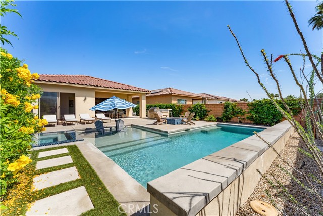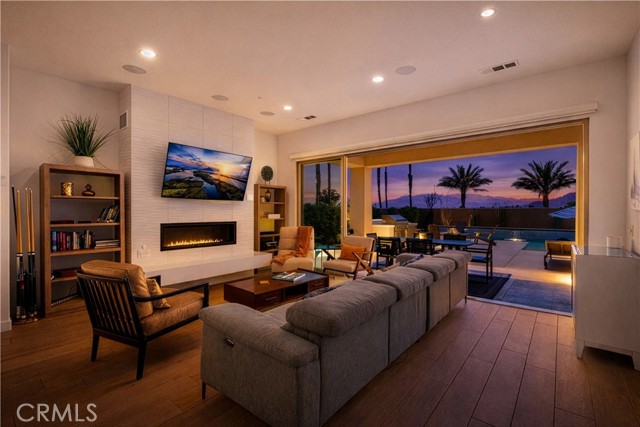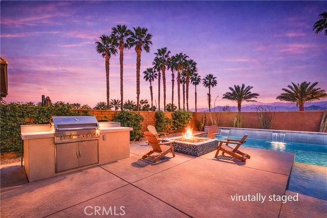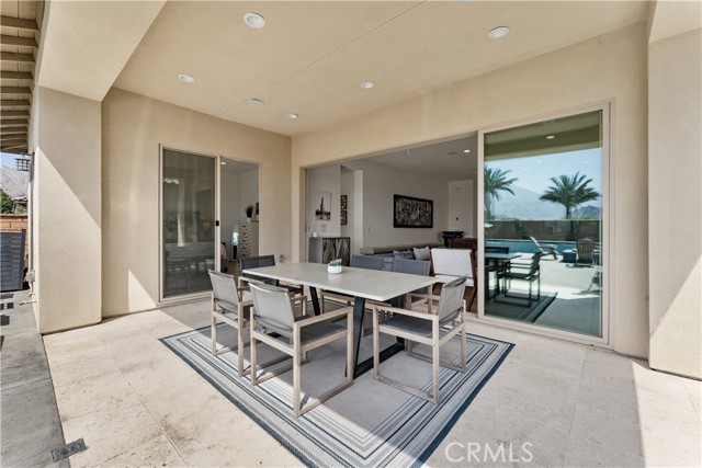 Welcome to your private desert retreat located within the prestigious Signature community of PGA West. This beautifully furnished 3-bedroom, 2.5 bath residence offers the perfect blend of luxury living, resort style amenities, and exceptional short-term rental history. Designed for seamless indoor-outdoor living, the home features a dramatic wall to wall retractable glass door system blending interior comfort with outdoor space showcasing the breathtaking backyard oasis and mountain views from nearly every angle. The open floor concept layout is ideal for entertaining, with spacious living area that flows effortlessly into the dining space and modern kitchen, the chef in the family will feel right at home with all the amenities this kitchen has to offer, large kitchen island allows for more gatherings. Step outside to a sparkling pool, spa multiple lounging areas, firepit for your enjoyment and panoramic desert and mountain vistas that stretch for days. Whether hosting guests or enjoying a quite sunset, this outdoor space delivers the ultimate resort lifestyle. Ideally situated with only one neighboring property, this home offers added privacy. Offered fully furnished (per inventory), this turnkey property is perfectly suited as a primary residence, second home or income-producing vacation rental. Located just minutes from world-class golf, dining, and renowned desert events, this is an exceptional opportunity to own in one of La Quinta's most sought-after communities.