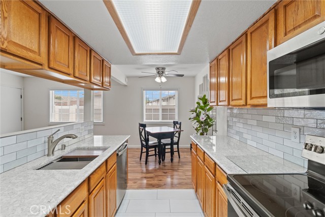 Welcome to your private oasis at 20800 Plum Canyon Road! This beautifully updated 2-bedroom, 1-bathroom home perfectly blends modern upgrades with functional living. Step inside to find sleek, updated hard flooring that flows seamlessly through an open layout, anchored by a kitchen boasting elegant granite countertops, an electric stove, and a dishwasher for effortless cleanup. Every room feels polished and quiet thanks to double-paned windows accented with custom interior molding. The primary bedroom is a true retreat, featuring a spacious walk-in closet, while the hallways offer an abundance of additional storage to keep your life organized. The bathroom has been tastefully renovated with porcelain tile on both the floor and shower walls, complemented by sophisticated brushed nickel fixtures. One of the standout features of this unit is the oversized private courtyard, perfect for outdoor dining or gardening, and a built-in house fan to keep you cool and energy-efficient during those warm California afternoons. Priced to sell, this turn-key gem won't last long—experience comfort and style in one of Plum Canyon’s most desirable locations!