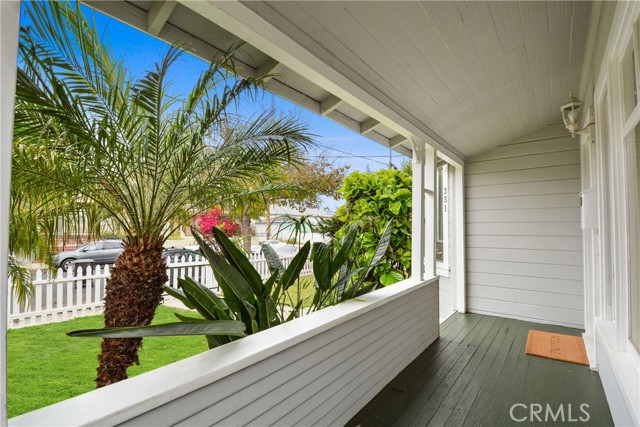 Welcome home to a timeless treasure filled with charm, character, and over a century of history. Built in 1896, this inviting 2-bedroom, 1-bathroom residence blends classic details with thoughtful updates. Step through the gate to the covered front porch, perfect for a porch swing or cozy seating. Inside, the inviting living room offers a light-filled atmosphere with abundant windows and views of the front yard. Recessed lighting and a mix of tile and engineered hardwood flooring add style and functionality throughout. The home features a comfortable layout with two bedrooms, including a front bedroom with a soaring ceiling and a second bedroom offering added privacy. Both include spacious closets. A transition space leads to a remodeled full bathroom, private interior laundry room, and backyard access. Forced air heating and air conditioning provide year-round comfort. The remodeled bathroom features recessed lighting, a bidet toilet, and a separate bathtub and walk-in shower. The updated kitchen includes quartz countertops, soft-close cabinetry, recessed lighting, stainless steel appliances (stove, refrigerator, vent hood), and an integrated dishwasher for a seamless, built-in look. Situated on a fully gated lot, the property offers a serene front yard with mature trees and an expansive rear yard with concrete and grass areas, ideal for outdoor use, entertaining, or storage. Rear alley access includes a manual gate for RV parking or up to four additional spaces, plus a detached two-car garage with automatic opener. Located just minutes from the highly anticipated West Harbor waterfront development, this home is perfectly positioned to benefit from the exciting transformation of the San Pedro waterfront. West Harbor will bring new dining, entertainment, retail, and open space to the area, further enhancing the vibrant coastal lifestyle that makes San Pedro such a special place to call home.