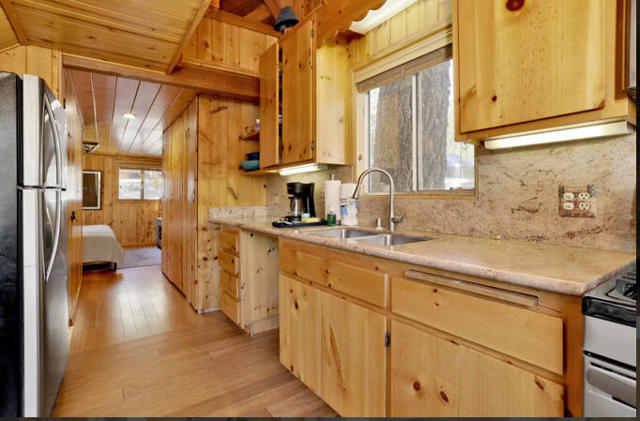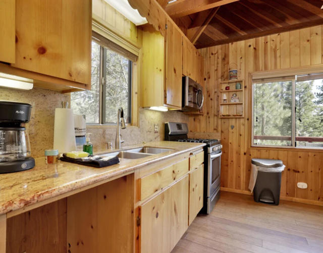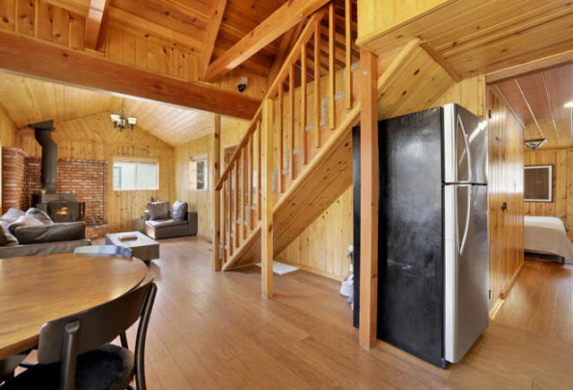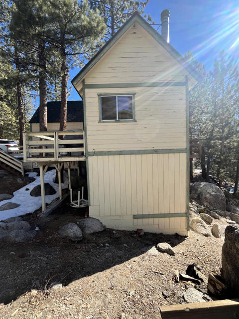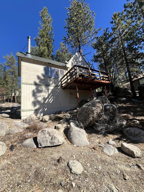 Welcome to the quiet neighborhood of Fawnksin, on the North Shore of Big Bear Lake. Known for its colorful history with celebrities, a familiar movie filming location, some of the oldest buildings in the Big Bear Valley, and boulder terrain; you will find a quaint town with 300+ homes on the north side of the Lake. There is immediate access to the famous Big Bear City with just a short 10 minute drive. This 2 bedroom 1 bathroom cabin is awaiting its new home owners. Just the perfect size for a mountain cabin, over 800 square feet of living space to make it your comfortable forever home, get-away escape or rental. Stainless steel appliances with thick granite counters/backsplash, and natural wood tones throughout all interior. Under cabinet accent lighting. Bedroom 1 is on the main floor and the bedroom 2 is upstairs. The living room boasts pitched ceilings and a wood burning stand-alone fireplace. This cabin has side decking views of the north and backyard decking with views of the south to take in the pines and inhale the fresh mountain experience. The exterior lot sits on just over 5000 square feet and displays the boulders and pine trees for that epic mountain surrounding. This area known for its boulders and charming surroundings overlooking Big Bear Lake with views of Snow Summit. Showings maybe postponed due to complete painting of exterior. Call for inquiries and viewings.