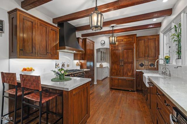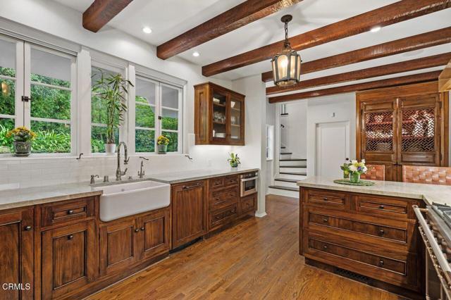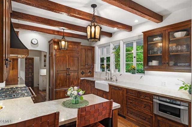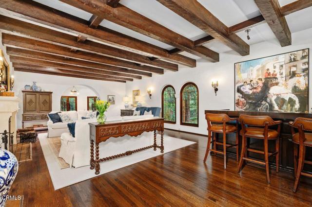 Welcome to a rare opportunity to acquire one of the most architecturally significant and storied estates in La Canada Flintridge. Nestled among majestic heritage oak trees in the prestigious Flintridge enclave, Wildewood Estate is a 1926 Spanish Colonial masterpiece set on a 40,523 square foot lot, designed by architect Ray J. Kieffer. It offers both historical provenance and extraordinary Mills Act tax advantages, with estimated annual property tax savings of approximately $75,000. Believed to have been offered for sale only once in its history, this is a legacy property of uncommon distinction.Officially recognized as the First Historically Significant Residence in La Canada Flintridge, the estate holds a distinguished place in the community's architectural legacy and has been featured in leading design publications, including Homes & Gardens, which recognized it as 'one of the world's best homes' for its thoughtful blend of modern comfort and original character.Over 17 years, the current owners undertook an extraordinary restoration, preserving original details while enhancing the home for modern living. Specialized architects and skilled tradespeople ensured period-appropriate work. Improvements include a full rebuild of the kitchen and all bathrooms, a new front courtyard, expanded backyard deck, and a downstairs wine room. The former domestic help quarters above the three-car garage have been rebuilt and now serve as a private home office with a kitchenette and bath.The two-story residence showcases authentic Spanish Colonial Revival architecture, with east- and west-facing patios and an inviting upstairs sitting porch. A dramatic coffered-ceiling entry with leaded-glass windows introduces interiors rich in character, including a grand living room with open-beam ceilings and fireplace, formal dining room, breakfast room, chef's kitchen with butler's pantry, and guest powder room. Upstairs, the primary suite features a fireplace, dressing room, Malibu tile bath, and large closet, alongside a secondary suite and two additional bedrooms. In total, the estate features five bedrooms and four-and-a-half baths.The grounds offer sweeping views of the San Gabriel Mountains and historic Flintridge, while a drive-through driveway from two wooded lanes enhances privacy and presence.Wildewood Estate is a preserved piece of Southern California architectural history offering grandeur, romance, and enduring financial advantage through the Mills Act designation.