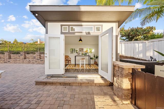 Beautifully upgraded Fire Mountain home with over $200,000 in improvements, offering enhanced privacy and seamless indoor-outdoor living. With no neighbors on either side, the property enjoys a rare sense of openness while maintaining a traditional neighborhood setting. The thoughtfully updated interior features new flooring throughout, complemented by fresh interior and exterior paint, modern lighting, and a new water heater. The refreshed kitchen blends style and function with quartz countertops and newer appliances, including an oven, refrigerator, and wine fridge—ideal for both everyday living and entertaining. Upstairs, the primary suite offers a relaxing retreat with a peek-a-boo ocean view, adding a touch of coastal charm. Step outside to your private backyard oasis, complete with a saltwater pool, spa, built-in BBQ, and outdoor fireplace—perfect for hosting or unwinding. A detached, finished structure provides flexible space for a home office, gym, or creative workspace. Additional highlights include a whole-house water filtration and descale system, a spacious lot with potential for RV or boat parking, or the opportunity to add an ADU.