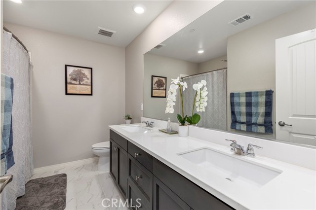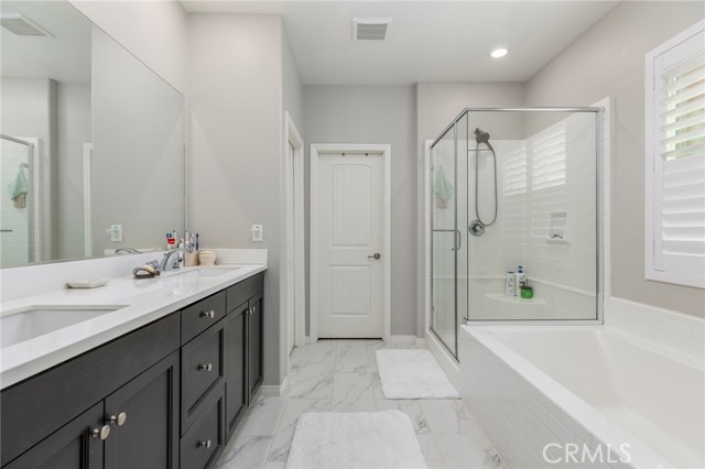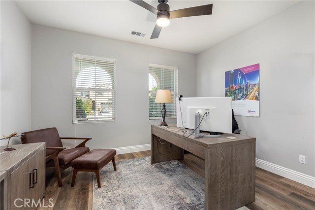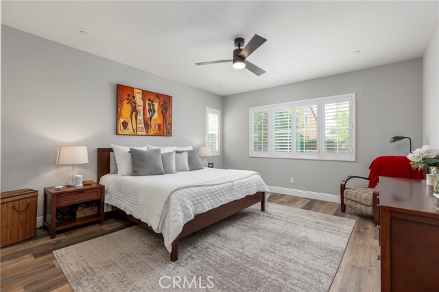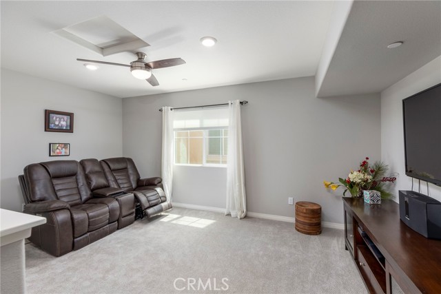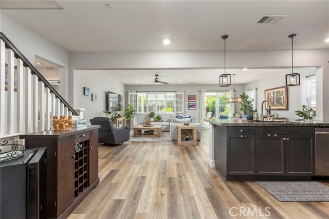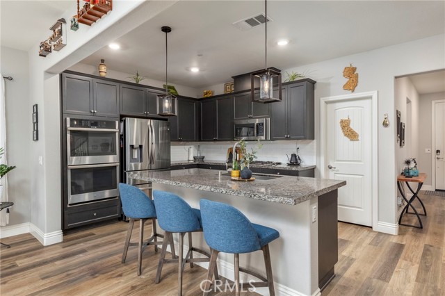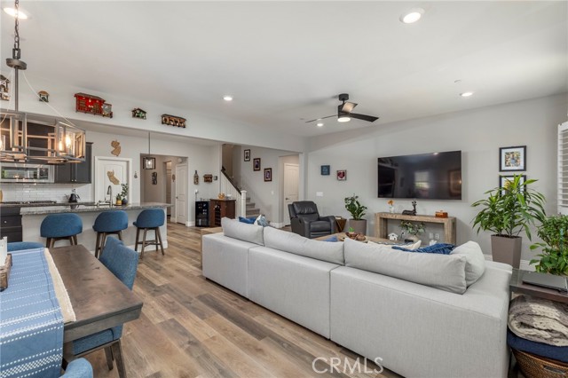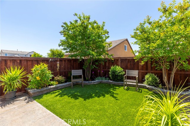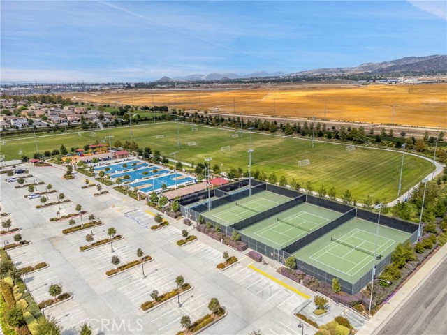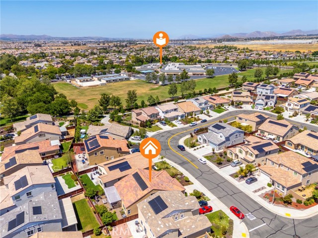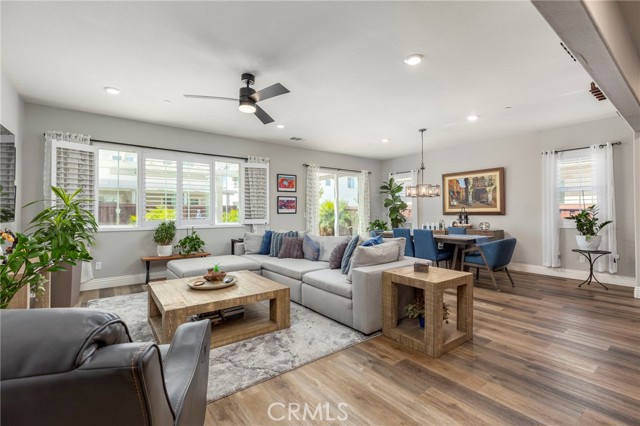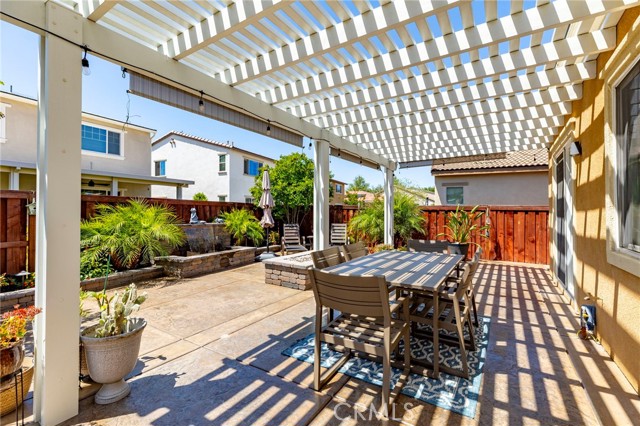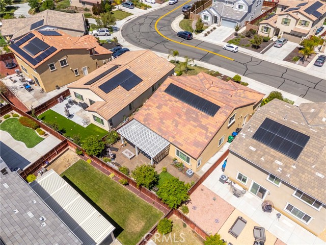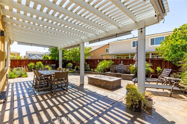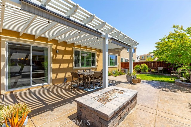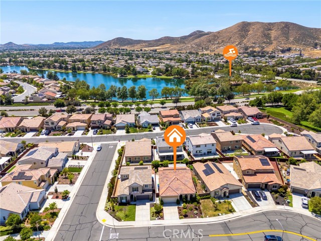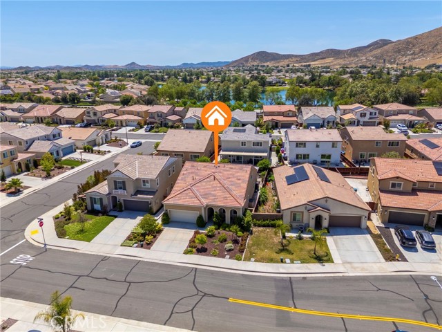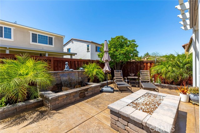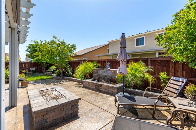 Built in 2021, this Lennar "Hampton Plan 2" feels like a brand-new model home, complete with OWNED solar. Spanning 2,321 Sq Ft this versatile layout features 3 spacious bedrooms—including a coveted downstairs primary suite—plus a large loft easily converted into a 4th bedroom. The heart of the home is a gourmet kitchen boasting shaker cabinetry, granite countertops, a custom backsplash, and stainless steel appliances with a double oven. Upgrades abound, including stunning Luxury Vinyl Plank and custom tile flooring, designer shutters, and a whole-house fan. Step outside to a backyard oasis designed for entertaining, featuring stamped concrete, an Alumawood patio cover with shades, a cozy fire pit, and a tranquil water fountain. Enjoy the exclusive Heritage Lake lifestyle: a 25-acre lake, clubhouse with banquet / event space, two community pools, a 20-acre sports park, all for a low HOA. Elementary and Middle Schools are walking distance. Your "forever home" is waiting in this sold-out community!