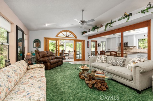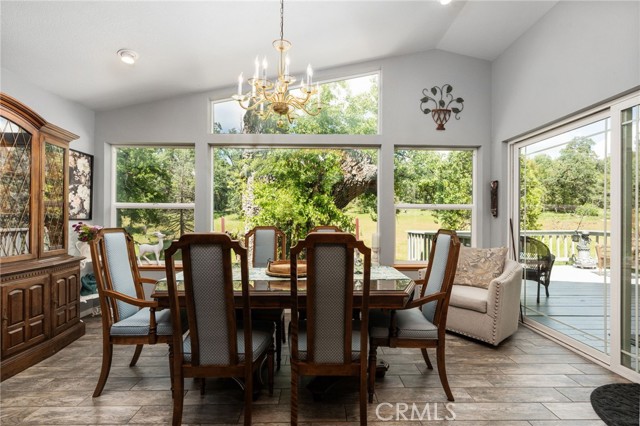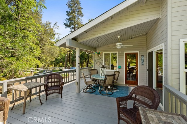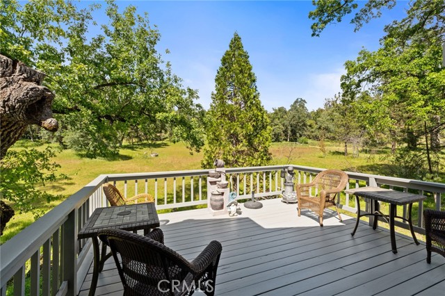 Turnkey 5-bedroom vacation rental in Coarsegold—just a short drive to Yosemite—with RV parking, game room potential, and 3.5+ acres. A rare find in Mudge Ranch for investors or second-home buyers. Welcome to your private mountain retreat set among towering pines and mature oaks at 3,300 ft elevation, offering a comfortable year-round escape. With over 2,800 sq ft, 5 bedrooms, and 2.5 bathrooms, the layout is ideal for hosting large groups and maximizing short-term rental income. The updated kitchen with granite countertops and bar-top seating provides a central gathering space, while the separate dining room features a wood slider, allowing you to create a more private, flexible space off the living area—perfect for entertaining or guest separation. Large windows bring in abundant natural light and frame peaceful views of the surrounding meadow and seasonal creek, creating a warm and inviting mountain atmosphere. The primary suite includes a private covered patio, offering a quiet place to unwind. Outside, the newly painted deck is perfect for enjoying morning coffee while watching deer and wild turkeys pass through. Additional features include RV parking, a detached garage, a Rinnai tankless water heater, newer roof, and built-in cabinetry throughout for added storage and functionality. The 3.5+ acre lot provides space, privacy, and future potential. Conveniently located 10 minutes to Oakhurst, 35 minutes to Yosemite National Park, and 45 minutes to Fresno, this home sits in a high-demand vacation rental corridor with strong appeal for both investors and second-home buyers. A versatile property offering both lifestyle and income potential—don’t miss this opportunity.