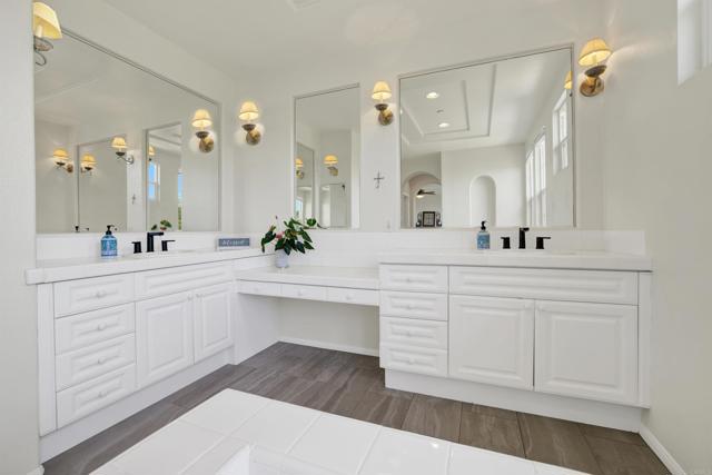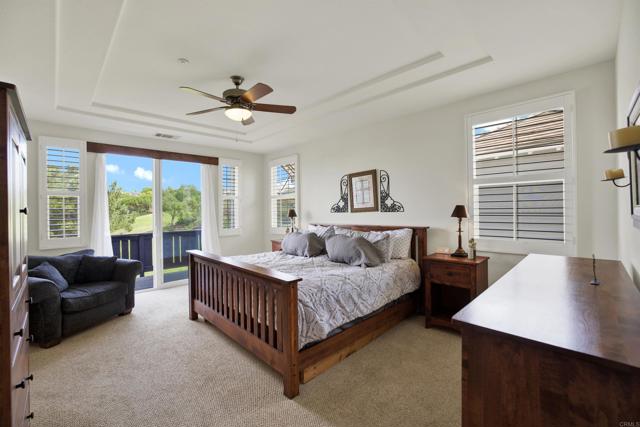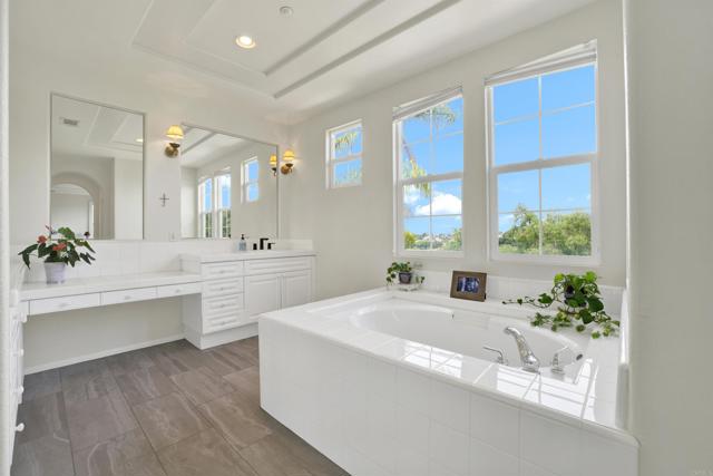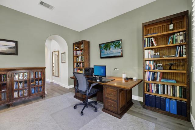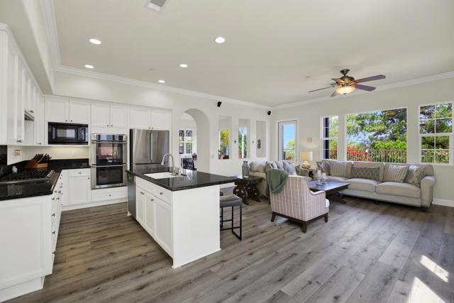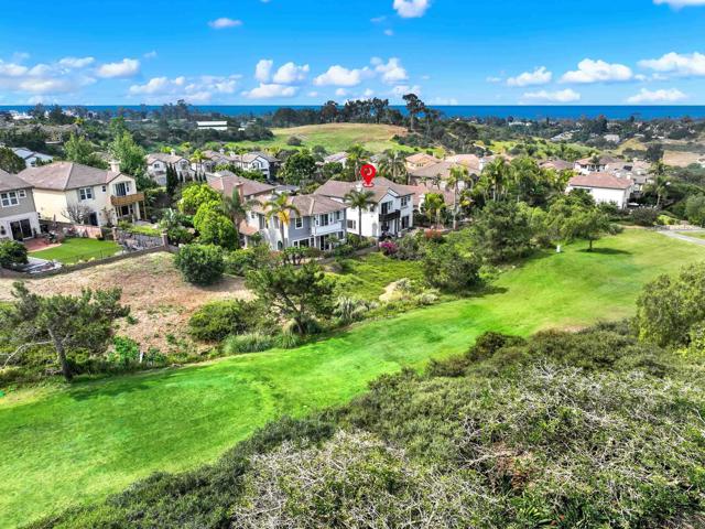 Ideally situated in the highly sought-after Encinitas Ranch community, this beautifully appointed 3-bedroom, 2.5-bath home offers exceptional flexibility with two additional bonus spaces—a spacious loft and a dedicated office—providing multiple options for additional bedrooms, guest space, or private work areas. The thoughtful layout allows the home to live like a 4- to 5-bedroom residence, adapting effortlessly to a variety of lifestyle needs. Enjoy an exceptional setting overlooking the 5th hole of the prestigious Encinitas Ranch Golf Course—an 18-hole championship course set along coastal bluffs, known for its lush fairways, scenic elevation changes, and refreshing ocean breezes. The home is thoughtfully positioned to capture both privacy and picturesque views, creating a peaceful backdrop for everyday living and entertaining. Inside, the home offers a bright and open floor plan filled with natural light, seamlessly connecting the main living areas. The kitchen flows effortlessly into the family room, creating a warm and inviting environment for gatherings. A standout feature of the home is the downstairs office with its own private door to the front patio, offering incredible flexibility as a potential guest suite, private workspace, or optional bedroom with separate access—ideal for multigenerational living, remote work, or hosting visitors. Upstairs, the spacious primary suite is a true retreat, featuring a peek-a-boo ocean view that brings in coastal breezes and a touch of the Pacific. The additional bedrooms are generously sized, while the expansive loft offers incredible versatility as a media room, playroom, or additional sleeping space. Located just minutes from world-class beaches, top-rated schools, shopping, dining, and all that Encinitas has to offer, this home blends coastal lifestyle with everyday convenience.