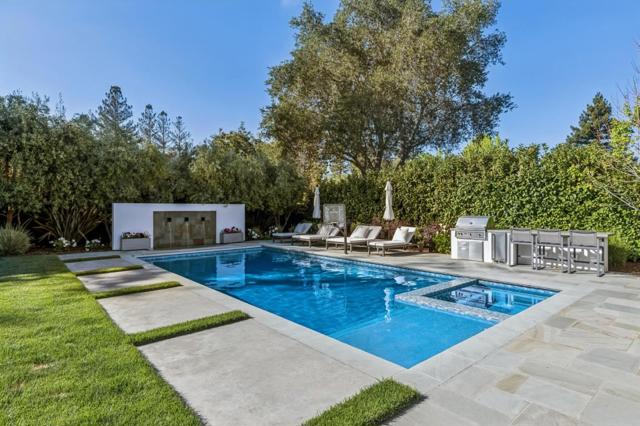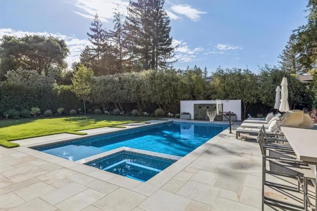 Built in 2017 & custom designed with exceptional quality throughout, this sophisticated estate offers the scale, livability & amenities sought by today's luxury buyer. Set on 0.35 of an acre & spanning 3 levels, the home features 7 bedrooms plus an office, 7 full baths & a powder bath. The main level is anchored by an expansive kitchen-family great room where stacking corner doors create seamless indoor-outdoor living. The kitchen features a large center island, ample white cabinetry, slab countertops, back pantry & top appliances. Formal living & dining rooms provide elegant entertaining spaces, while an executive office & main-level guest suite add flexibility. Upstairs, the primary suite offers a fireplace & spa-inspired bath. 3 additional bedroom suites complete the upper level. The lower level delivers a rare lifestyle experience with a golf simulator, wine cellar, gym, expansive recreation room with wet bar, full bath & additional bedroom suite. Designed for entertaining, the grounds include a covered loggia, outdoor BBQ counter, fire pit, expansive lawn & pool/spa with waterfall backdrop. Acclaimed Menlo Park schools & near Sand Hill Road, Stanford, downtown Palo Alto, Hwy 280 & major Silicon Valley tech campuses. This is a rare offering of luxury, privacy & convenience.