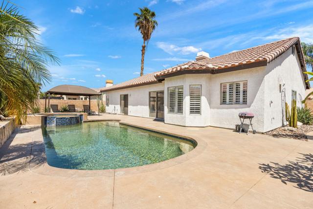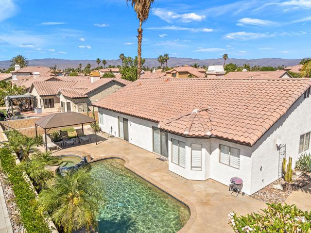 SOLD TURNKEY FURNISHED -- SHORT-TERM RENTALS ALLOWED! Welcome to the highly desirable community of Rincon, ideally located within walking distance to the world-famous Polo Grounds, home of Coachella and Stagecoach. Tucked away on a quiet, low-traffic interior street with a cul-de-sac-like feel, this beautifully maintained home offers the perfect blend of comfort, privacy, lifestyle, and investment potential. Featuring 4 spacious bedrooms, 2 bathrooms, and a 3-car garage, this residence is designed for both everyday living and effortless entertaining. The home showcases updated tile flooring throughout the main living areas, a fully stocked and updated kitchen with quartz countertops and stainless-steel appliances, and an inviting open layout that flows beautifully from the interior living spaces to the backyard retreat. The private backyard is made for desert living, complete with a sparkling pool and spa, ambient nighttime lighting, and a warm resort-like setting ideal for relaxing or entertaining. Two fruit trees add to the charm, including a sought-after Oro Blanco grapefruit tree. Additional highlights include a brand-new HVAC system, a family-friendly setting with green space/park directly beside the home, and a central location with easy access in and out of the community. Enjoy being just minutes from everyday essentials including Target, The Home Depot, Costco, and close to Old Town La Quinta, known for its charming shops, dining, and popular weekend farmers market. Whether you are searching for a full-time residence, vacation home, or income-producing short-term rental, this Rincon property offers an exceptional opportunity in one of La Quinta's most convenient and desirable locations.