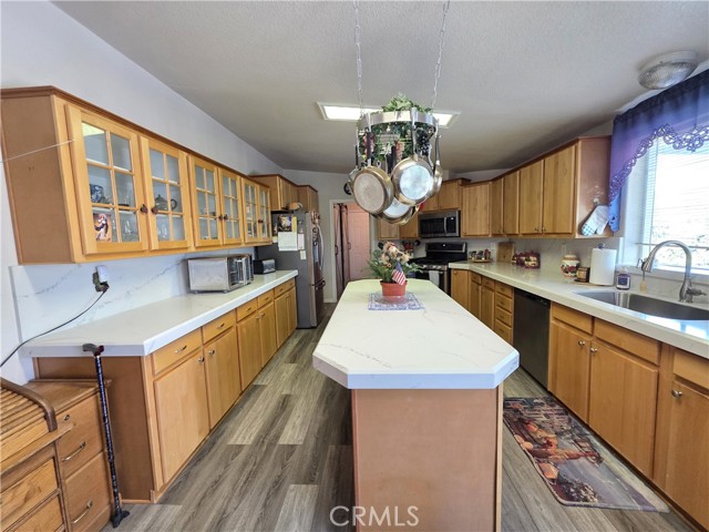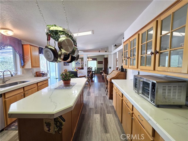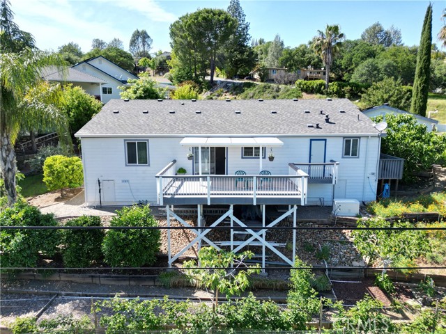 Beautifully upgraded custom home located on the lakeside of Kelly Ridge, offering stunning views of Lake Oroville. This spacious 3-bedroom, 2-bathroom home features approximately 2,132 sq ft of living space with an expanded floor plan that enhances the kitchen, formal dining room, and bedrooms for added comfort and functionality. The primary suite includes a large walk-in closet along with a walk-in tub and separate shower. Situated on a .27-acre lot bordering Lake Oroville State Park, the property offers privacy, scenic surroundings, and a quiet setting on a shared driveway with only a few neighboring homes. The oversized 22x28 garage includes wheelchair-accessible entry to the home, and the property also features RV parking plus additional parking spaces. Inside, the home has been thoughtfully updated with granite countertops and backsplash, waterproof vinyl flooring, a pellet stove, and a spacious pantry with utility sink behind stylish barn doors. Energy efficiency is enhanced with added insulation, a solar system, and a Heat Shield attic treatment. Additional features include a Generac backup generator, walk-in tub (installed 2025), and well-maintained HVAC system. Outdoor living is just as impressive with a large Trex deck and sunshade, terraced landscaping with retaining walls, drip irrigation for fruit trees and shrubs, and a fully fenced perimeter with deer fencing. Recent improvements include gutter leaf guards and RoofMaxx treatment for extended roof life. This property combines comfort, functionality, and incredible lake views, ideal for full-time living or a peaceful retreat. Buyers to verify any and all information to their satisfaction.