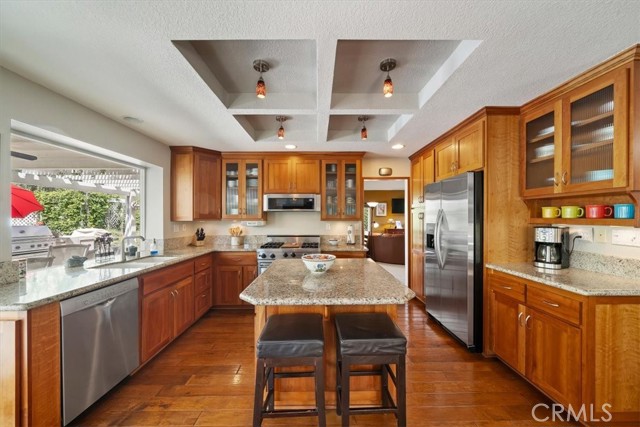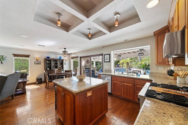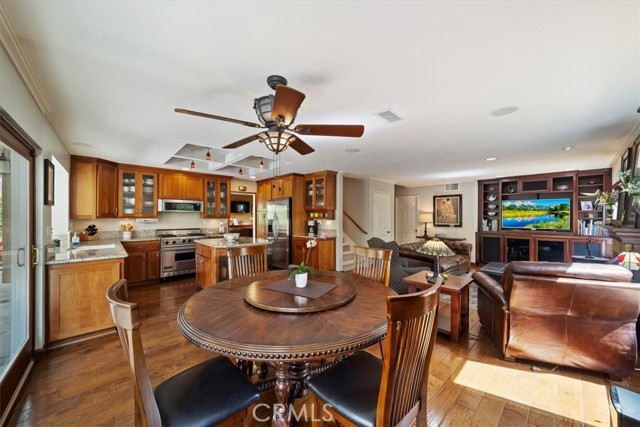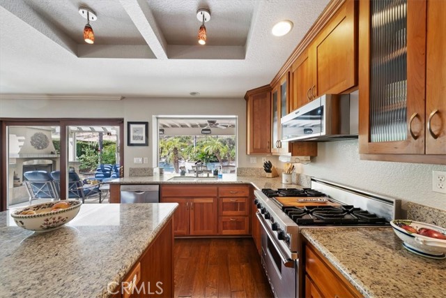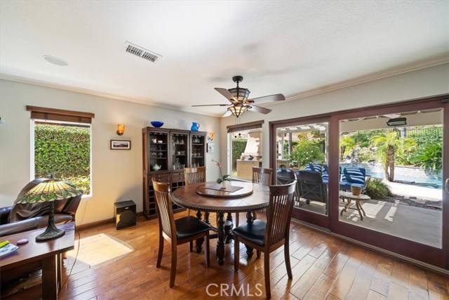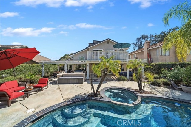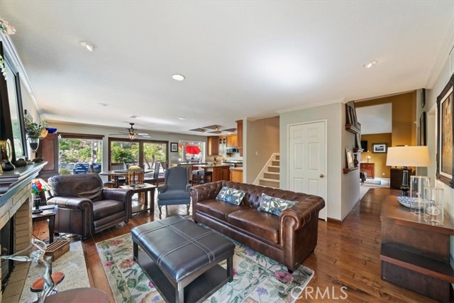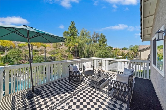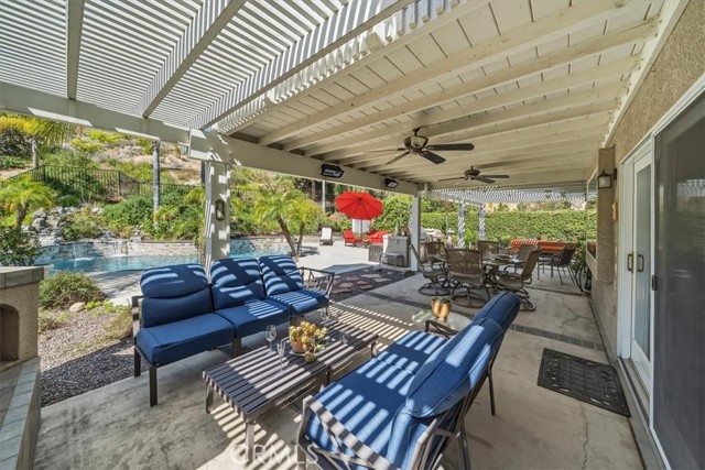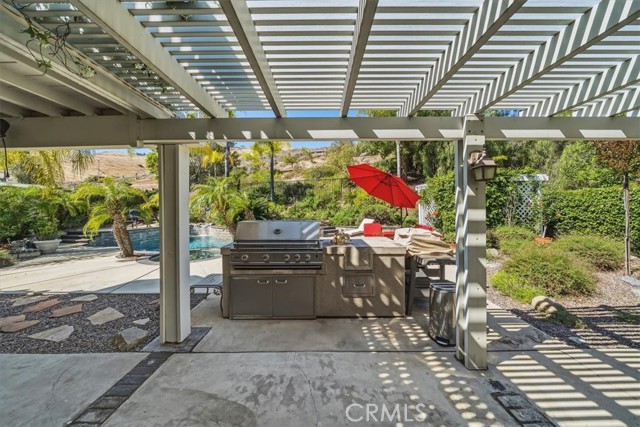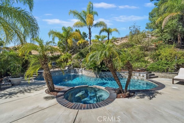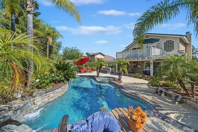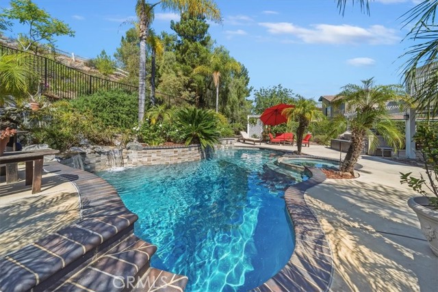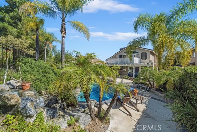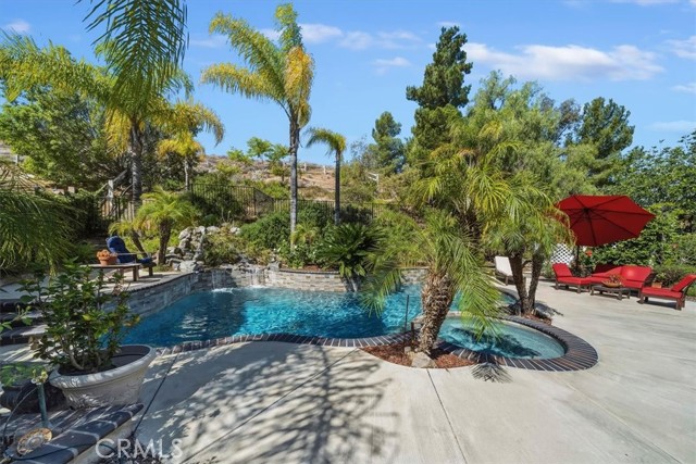16701 Lake Knoll Parkway, Located in the desirable Lake Hills community in the foothills above Riverside, this beautifully updated and maintained 4-bedroom, 2 ½-bath home offers wonderful views, numerous upgrades, and a backyard that feels like a private resort! Over 2200 square feet of gracious living! Huge lot! Plus, you get a paid-off electric generating solar system and lovingly cared-for water-wise landscaping to help save you money! From the moment you arrive, the home’s charm is undeniable. Enter through the front door to find soaring ceilings and an open formal living room and formal dining room. Perfect for entertaining! The inviting family room features a built-in bookcase with room for a flat-screen TV and a cozy fireplace with a beautiful mantel. Off the family room is a gourmet kitchen with rich wood cabinetry, granite countertops, a center island, upgraded appliances, including a Viking stove, and a picture window overlooking the backyard! There’s a spacious dining nook area with room for a table of six. An upgraded powder room and large laundry room complement the downstairs. Gleaming hardwood floors run throughout the downstairs! The seller is leaving the refrigerator, washer, and dryer, too! Walk up the stairs to the large primary suite with its vaulted ceiling, walk-in closet with organizers, and a bathroom to die for! The bathroom is highly upgraded with an oversized walk-in shower, a jacuzzi-style soaking tub, and a large vanity with a granite countertop. Off the primary suite is your own private patio deck, perfect for watching sunsets! There are 3 other wonderful bedrooms upstairs, plus a hall bath with its own tub/shower. Step outside to your own private oasis featuring a Waterfall feature, stunning black bottom pool and spa, built-in barbecue island, a showpiece outdoor fireplace, and a patio that runs across the entire back of the house. The upper yard offers additional space for a future sun deck with dramatic views! There is water-wise landscaping front and back, with automatic sprinklers. The 3-car garage has roll-up doors with an automatic opener. This home is a short distance away from the freeway, the Metrolink station, and LOTS of shopping. The property has a small HOA fee, no Mello-Roos, and the community offers plenty of family amenities! There is SO much more! This home perfectly combines comfort, efficiency, and outdoor beauty. An exceptional opportunity in one of Riverside’s most sought-after neighborhoods!!
