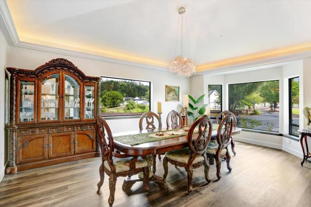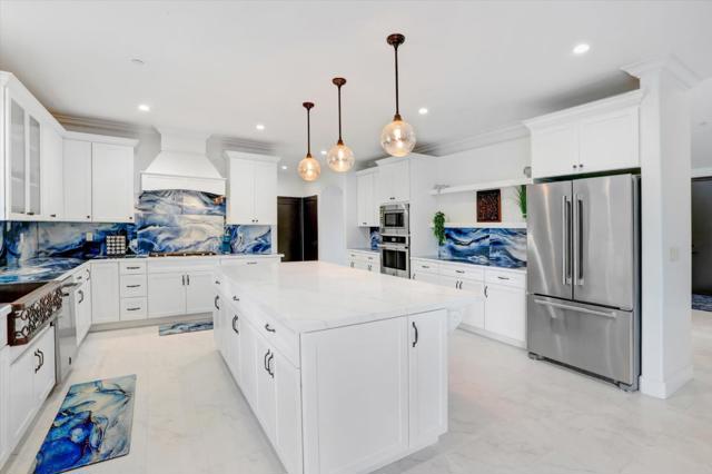 WOW FACTOR BEAUTY! A TRUE ONE-OF-A-KIND DIAMOND! MUST SEE! Gated 2023 custom estate built by a master craftsman with meticulous attention to detail. This stunning 4BR/3.5BA, 3,683 sq. ft. single-level home sits on 2.6 acres in Santa Rosa, offering rare privacy, luxury, and premium upgrades throughout. A circular driveway and elegant fountain create a dramatic arrival. Inside, vaulted ceilings and a light-filled open layout highlight refined craftsmanship and seamless flow. The chefs kitchen features stainless steel appliances, custom shaker cabinetry, and abundant counter space opening to a spacious great room, perfect for entertaining. Oversized hallway enhances scale, while the primary suite delivers a spa-like retreat. Dedicated office adds flexibility. Resort-style backyard living with covered patio, heated concrete floors, lush landscaping, mature trees, expansive lawns, and tranquil koi pond, creating a private park-like escape. Highlights include a 2,400 sq. ft. barn with office and endless potential, RV paddock with full hookups, multi-zone HVAC, central vacuum, newer roof, and two interior laundry rooms. LUXURY. LAND. PRIVACY. A RARE 2023 ESTATE OPPORTUNITY. SCHEDULE YOUR PRIVATE TOUR TODAY.