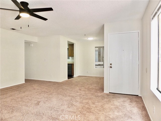 Bright and move-in ready 2-bedroom, 2-bath end unit condo in a desirable gated Lakewood community. Fresh paint and new carpet create a clean, modern feel, while the spacious living room features a ceiling fan for added comfort. The primary bedroom opens to a private balcony patio perfect for relaxing mornings or evenings. Enjoy year-round comfort with central A/C and heat controlled by a Nest thermostat. The home offers two full bathrooms, the kitchen with dishwasher, a stove, and convenient in-unit side-by-side washer and dryer hookups. Community amenities include a large sparkling pool and spa just in time for summer, a clubhouse, and a dedicated dog park area. This unit also comes with two parking spaces—one exterior carport and one gated subterranean spot adding extra convenience.