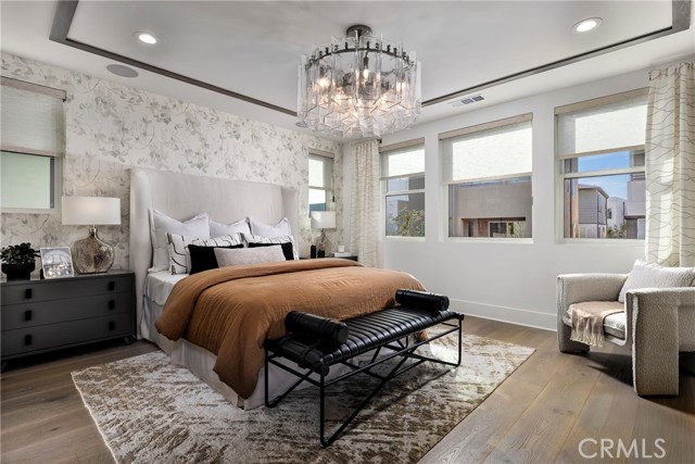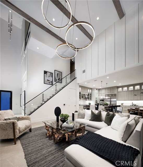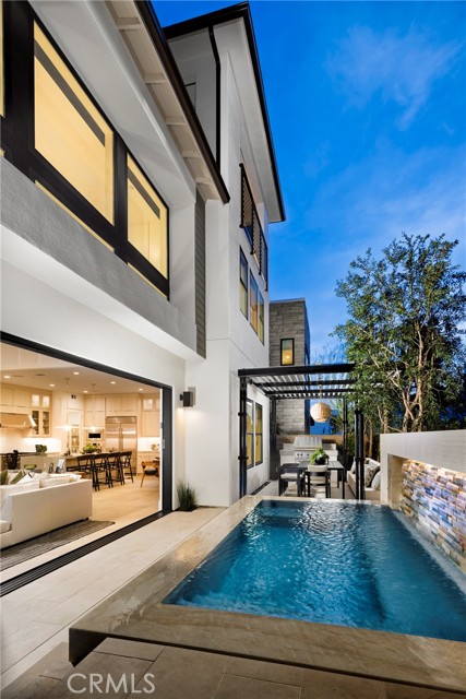 Welcome to Elevate at Great Park Neighborhoods, Irvine — a luxury Toll Brothers community. A rare opportunity to own a fully designed Toll Brothers model home—available for a Spring 2027 closing. This exceptional Avelina model home offers 3,411 sq. ft., 5 bedrooms, and 5 baths, showcasing bright, open concept living with elevated designer finishes throughout. Fully furnished and professionally designed, this model home is sold complete with all upgrades, custom furnishings, and landscaped backyard with grill and water feature. An expansive entry with 28’ vaulted ceiling sets the tone, complemented by 24”x48” beige Pietra Italia tile flooring throughout the main level. The chef’s kitchen features Wolf® & Sub-Zero® appliances, walk-in pantry, White Lux quartzite countertops, and a statement waterfall island. The spa-inspired primary suite includes a custom walk-in closet and a luxurious bath with a floor-to-ceiling polished marble tile shower. Designed for flexibility and entertaining, the home offers a third-floor loft with dry bar, private deck with fireplace, bedroom, and full bath—ideal as a retreat or guest suite. Paid-off solar adds lasting value. Located near top-rated schools including Cadence Park School (K–8) and Portola High School, with convenient access to Great Park amenities, trails, and shopping.
