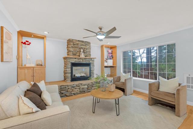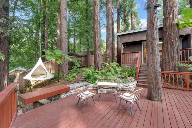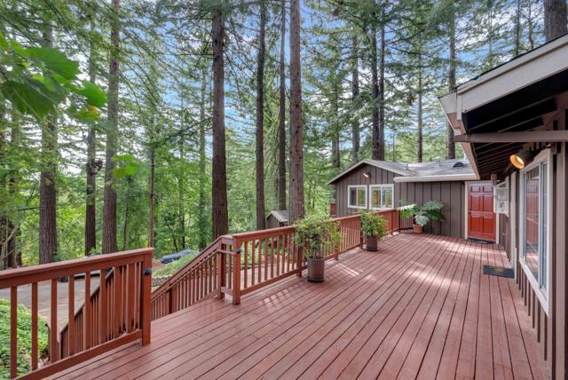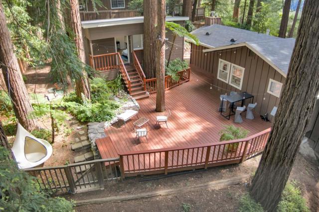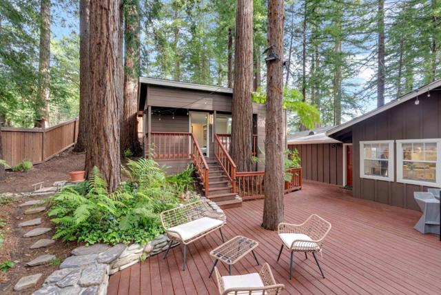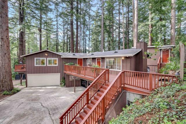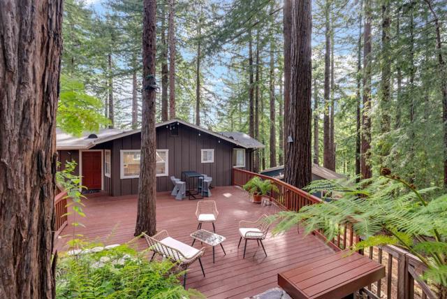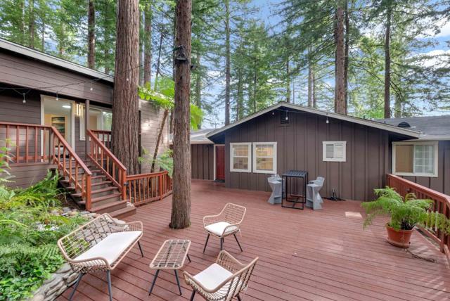 Redwood Canyon Retreat, Mountain Living, Convenience and Lifestyle! Tucked among towering redwoods yet just 15 minutes to Los Gatos, 20 minutes to Santa Cruz, and with easy access to Hwy 17 via the Glenwood cutoff, this beautifully remodeled 3-bed, 3-bath mountain home delivers serenity without sacrificing convenience. Vaulted ceilings, wolf appliances, quartz countertops, hardwood floors, and three fireplaces set the tone inside, while sweeping redwood decks and forest views complete the picture outside. The primary suite is a spacious retreat featuring a stone fireplace, hardwood floors, private deck access with redwood forest views, and a full en-suite bath. The flexibility here is exceptional: the lower level can function as a self-contained 1-bed/1-bath unit, and a permitted guest cottage in the rear adds a fully equipped studio live in the main home and generate income from two separate units simultaneously. 2-car garage with workshop, spacious parking, auto sprinklers, and BBQ area round out the package. Top-rated Scotts Valley schools. Mountain escape. City access. Income potential. Rarely does one property deliver all three.