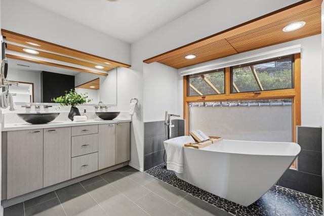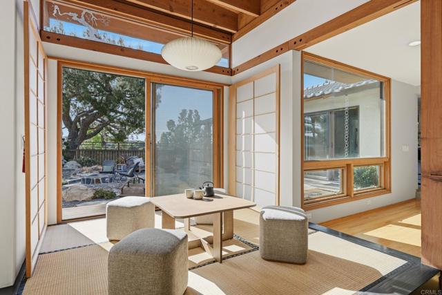 A rare Mt. Helix architectural treasure designed by renowned architect Kotaro Nakamura, this award-winning residence is a masterful blend of Japanese design principles and Southern California living. Honored with an Award of Excellence by San Diego Home & Garden Magazine, the home is centered around a tranquil Zen garden—visible from nearly every room—creating a seamless connection between indoors and out. The dramatic "genkan" entry sets the tone upon arrival, grounded by two monumental natural logs harvested from fallen trees on Mt. Palomar, offering a striking sense of place, intention, and reverence for natural materials. The U-shaped floor plan embraces the formal garden and water features, filling the home with light, calm, and balance. This stunning 3-bedroom, 2.5-bath residence offers approximately 2,471 sq ft of thoughtfully curated living space, showcasing raised hardwood floors, etched glass accents, and serene garden and ocean views on clear days of the Coronado Islands. The upgrades blend modern comfort with timeless design, while the meticulously designed landscaping is reminiscent of the Japanese Friendship Garden in Balboa Park. Every corner of reminiscent of this half acre is curated for beauty, tranquility and a peaceful living experience. Additional features include Japanese ceramic tile roofing with rolled stainless steel, dual HVAC systems, water filtration, granite countertops, indirect lighting, integrated security, ethanol fireplace and more—each detail selected with intention and craftsmanship. A truly special offering—peaceful, refined, and architecturally significant—this is Mt. Helix living at its finest. People are drawn to Mt. Helix for its rare blend of elevated views, privacy, and community charm. Perched above La Mesa, the area offers sweeping panoramas, a peaceful residential feel, and distinctive homes on larger lots—many custom-designed to embrace the hillside setting. Residents enjoy a quiet, nature-forward lifestyle with easy access to parks, neighborhood gatherings, and nearby shopping and freeways, making Mt. Helix feel like a serene retreat that’s still conveniently connected to the rest of San Diego.