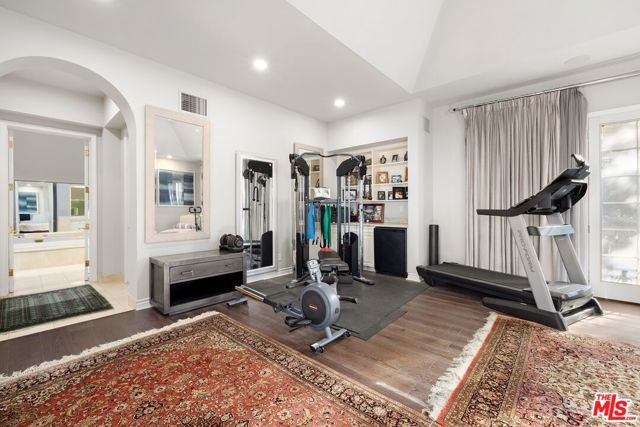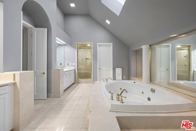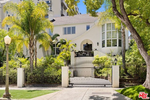 Rare offering in the coveted enclave of Little Holmby, this exceptional gated estate was masterfully reimagined in 2019, showcasing refined craftsmanship, bespoke finishes, and meticulous attention to detail throughout. A striking double-height entry sets the stage, leading to an elegant formal living room filled with natural light, where French doors open to a charming courtyard ideal for al fresco entertaining. Designed for both grand-scale gatherings and comfortable everyday living, the thoughtfully curated floor plan features a distinguished private office, a well-appointed guest suite with en-suite bath, powder room, impressive formal dining room, and an inviting family room anchored by a fireplace. The gourmet chef's kitchen is complemented by a sunny breakfast area and custom built-in bar, all flowing seamlessly through French doors to the private backyard retreat with a sparkling pool, spa, and generous entertaining areas. The upper level offers additional guest bedrooms along with a luxurious primary suite featuring a spacious bath and expansive walk-in closet. Additional highlights include a comprehensive security system, substantial three-car garage, and ample additional parking within the gated motor court. Located within the highly regarded Warner Avenue Elementary School district, this turnkey residence presents a rare opportunity to own a beautifully updated home in one of Los Angeles' most prestigious neighborhoods.