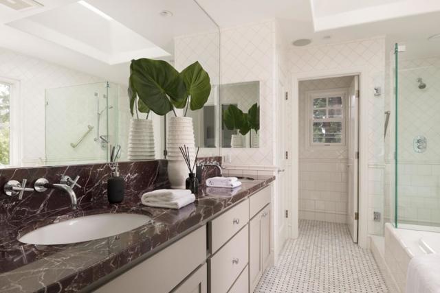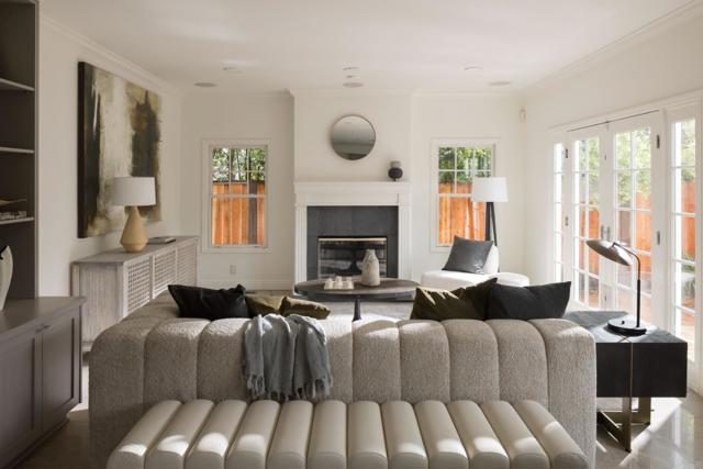 Tucked along a tree-lined street in premier Allied Arts, this executive-style residence, built in 2000, offers a thoughtful blend of classic and contemporary design. Refined formal living and dining rooms provide defined spaces, complemented by a spacious open-concept kitchen and family room featuring a marble centerpiece island, basalt countertops, Sub-Zero fridge, Viking range and oven, dual sinks, and a sunlit breakfast area. The main level also features a bedroom and full bathroom; ideal for guests or in-laws; along with a dedicated laundry room. Upstairs, an exquisite primary suite serves as a private retreat, complete with a cedar-lined walk-in-closet, marble double-sink counters, a jetted tub, and generous proportions. Two additional bedrooms share a well-appointed hallway bath, rounding out a highly functional, family-friendly floor plan. Beyond the interiors, the expansive backyard unfolds like a private park, with sweeping lawn, mature landscaping and ample space for entertaining and recreation. A coveted Allied Arts setting, moments from Stanford University, scenic parks, and the popular shops and restaurants of both downtown Menlo Park and Palo Alto, with access to acclaimed schools.