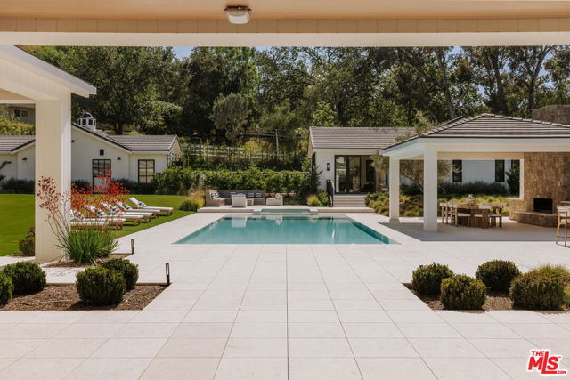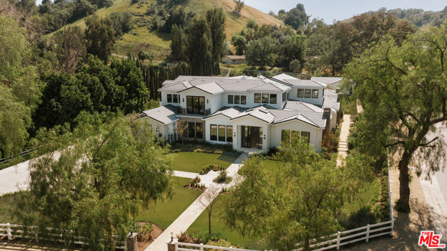 Within the coveted guard gated enclave of Hidden Hills, this newly constructed estate is a study in quiet luxury, where architectural elegance meets a refined modern sensibility. The residence unfolds with intention, offering 7 bedrooms and 8 baths in a layout that feels both grand and deeply livable. A striking double height entry introduces a sequence of light filled spaces defined by clean lines, soaring ceilings, and curated finishes. The formal living and dining rooms evoke a gallery like scale, while the family room is warm and inviting, seamlessly opening to a chef's kitchen of exceptional design. An oversized island, bespoke cabinetry, and a fully appointed prep kitchen create a culinary setting that is as beautiful as it is functional. Every element has been thoughtfully considered. A private office offers quiet focus and a wellness suite with gym and sauna provide spaces for restoration and retreat. Upstairs, the primary suite is expansive and serene, with dual spa inspired baths, generous dressing rooms, and a private terrace overlooking the grounds. The outdoor experience mirrors the home's refined aesthetic. Covered loggias, layered entertaining spaces, and a resort caliber pool and spa are surrounded by lush landscaping, creating an atmosphere that feels both elevated and effortless. An elevator, horse stables, four car garage, and beautifully appointed guest accommodations complete the offering. This is a home defined by nuance and restraint, designed for those who value craftsmanship, proportion, and the art of living well in one of Southern California's most exclusive communities. The annual HOA fee will be adjusted based on the sale price, at a rate of $0.0025 per dollar per year. Stable: 573.58 sq. ft. Garage: 1,104.6 sq. ft. ADU: 1,107.25 sq. ft. (Note: Stable, Garage, and ADU square footage, as well as ADU bedrooms and bathrooms, are not included in the total livable square footage.)