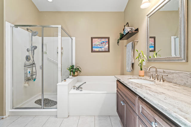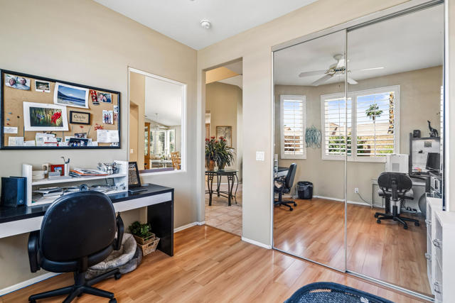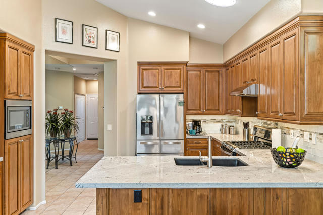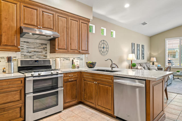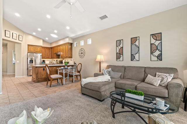 This charming Oasis CC home sits on a quiet cul-de-sac and is just a short walk to the Clubhouse. Don't miss the chance to live and play in this vibrant community. The spacious floor plan is one of the largest, with plenty of room for both living and entertaining. The family room, just off the kitchen, is perfect for casual get-togethers, while the remodeled kitchen features custom alder wood cabinets, thoughtfully designed with organizers and pull-outs. Neutral granite countertops pair beautifully with the glass tile backsplash. The formal dining and living areas provide a large space for hosting family and friends. The master suite boasts a walk-in closet, separate shower, and large bathtub, brightened by a skylight. Guests will appreciate their roomy quarters, which can fit a king-sized bed, and the third bedroom--currently an office--can be easily converted into a private bedroom. Step outside to the patio for dining or BBQs, with the bonus of a side yard. This home also includes leased solar panels. The community is open to all ages and offers a top-rated executive golf course with affordable memberships and various packages to match your desired amount of play. Enjoy pickleball, meet neighbors, and make friends, or take your pup to the enclosed dog park. The clubhouse features a main dining room, lounge with outdoor seating on the covered deck, and the casual Oasis Grille for breakfast or lunch. Best of all, homeowners own the golf course and amenities, all managed on-site by a dedicated team. Explore the Oasis Country Club--your next home is waiting!